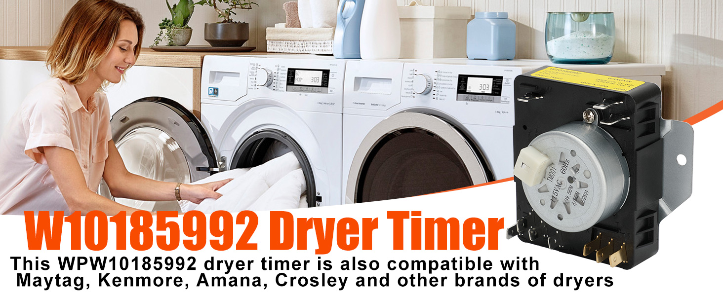 【Perfect Replacement】It is the wpw10185992 dryer timer replacement for W10185992 E, W10185992 G, WPW10185992VP, PS11749833, 418-095-20-B5, AP6016542, EAP11749833, 4441883 and more. This WPW10189592 dryer timer is also compatible with Maytag, Kenmore, Crosley and other brands of dryers.