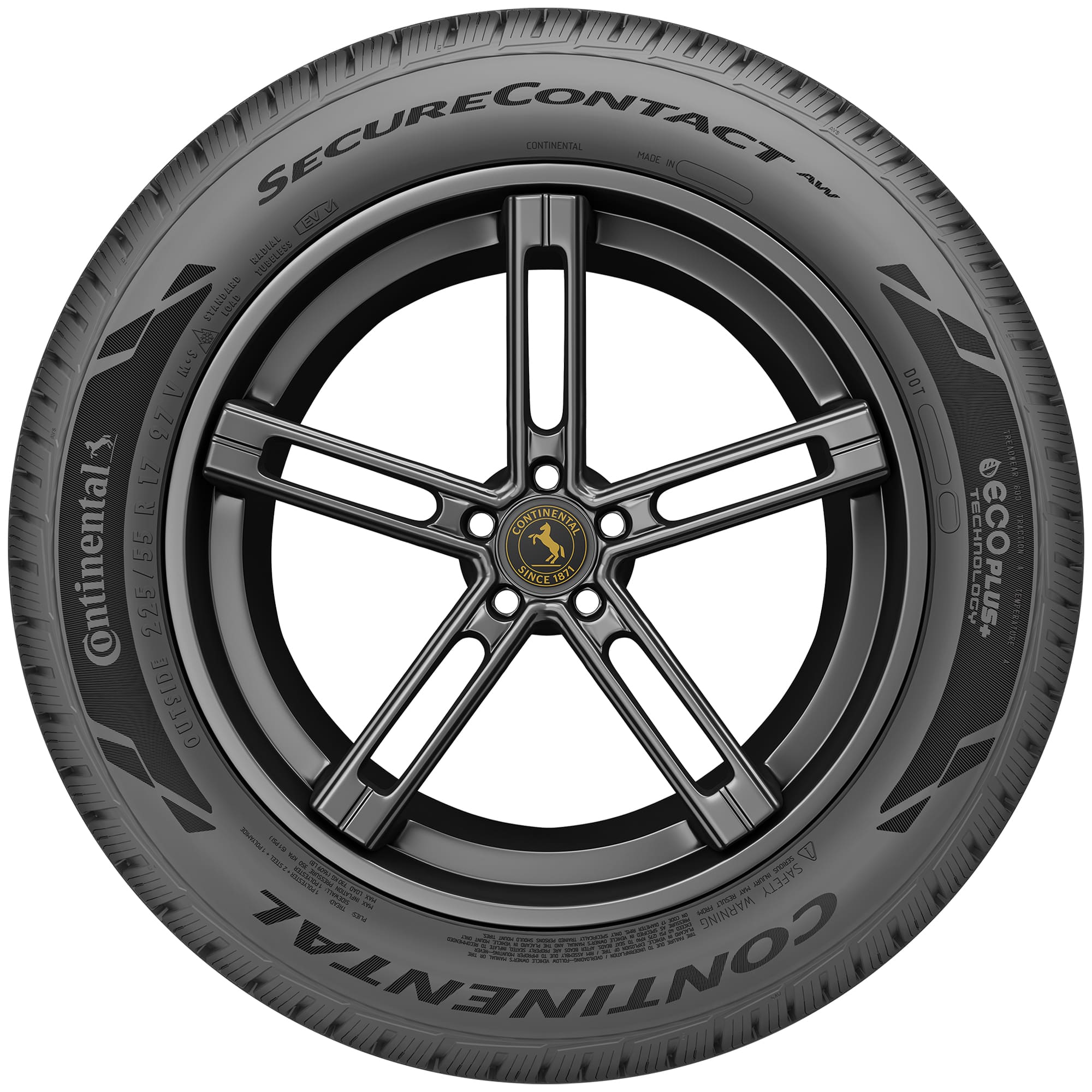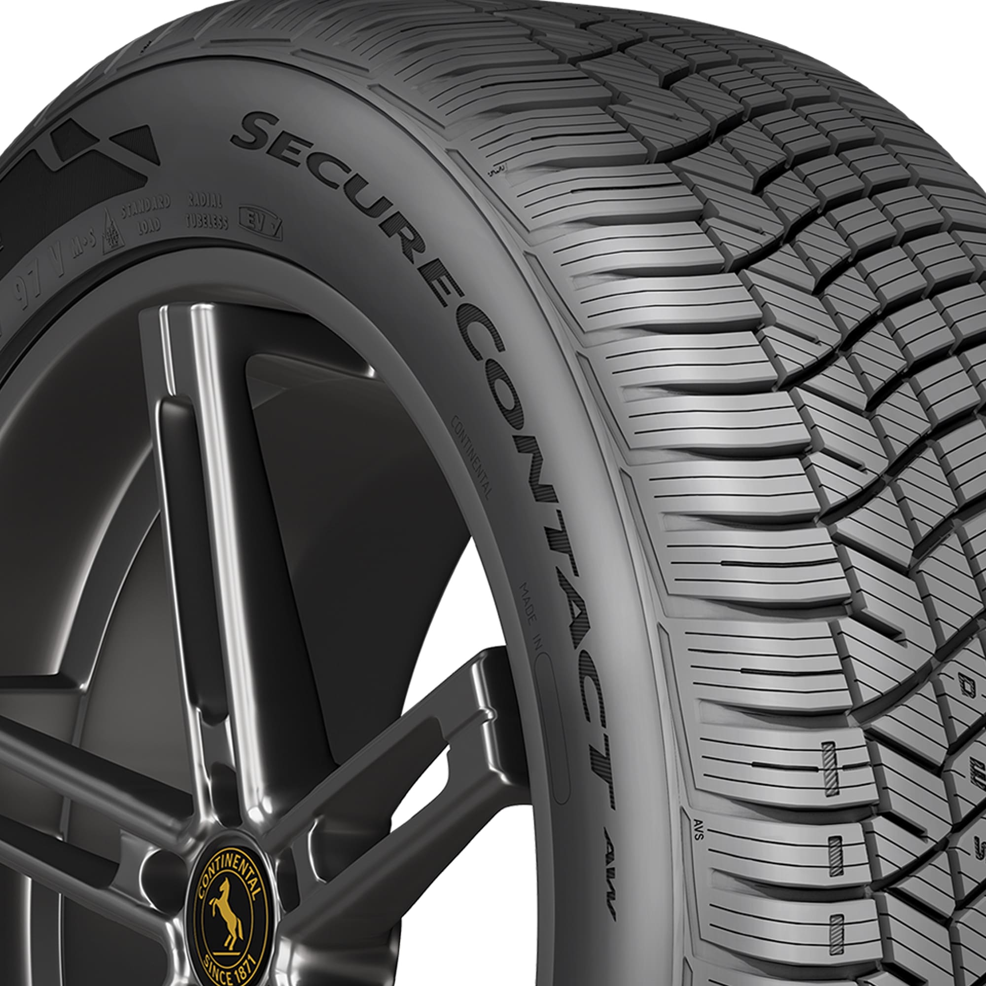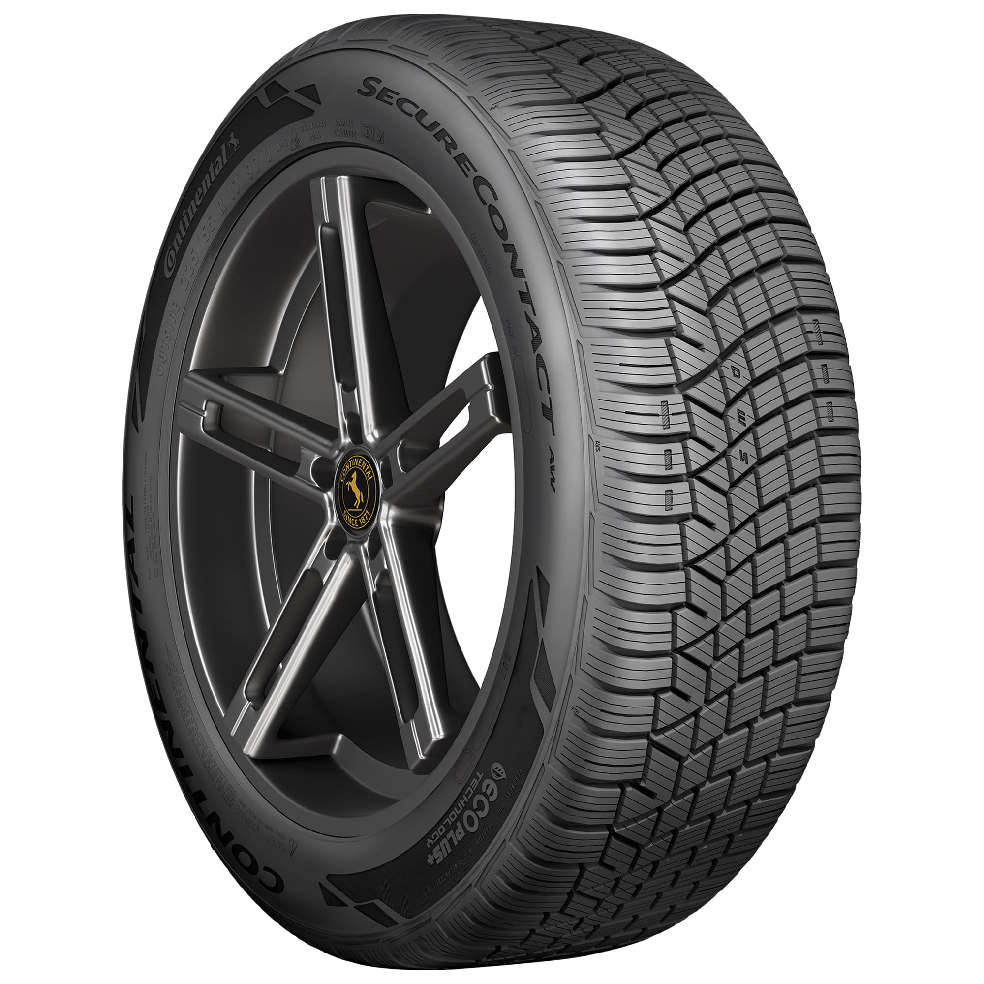 The Continental SecureContact AW is a premium, all-weather touring tire for passenger cars, crossovers, and SUVs. Built to allow drivers the ability to drive on one set of tires year-round, the SecureContact AW features Continental's EcoPlus Technology for fuel savings, optimized range, shorter stopping distances on wet roads, and a long tread life. Backed by Continental's Total Confidence Plan, the SecureContact AW carries the 3-Peak Mountain Snowflake symbol for use in severe winter conditions.
