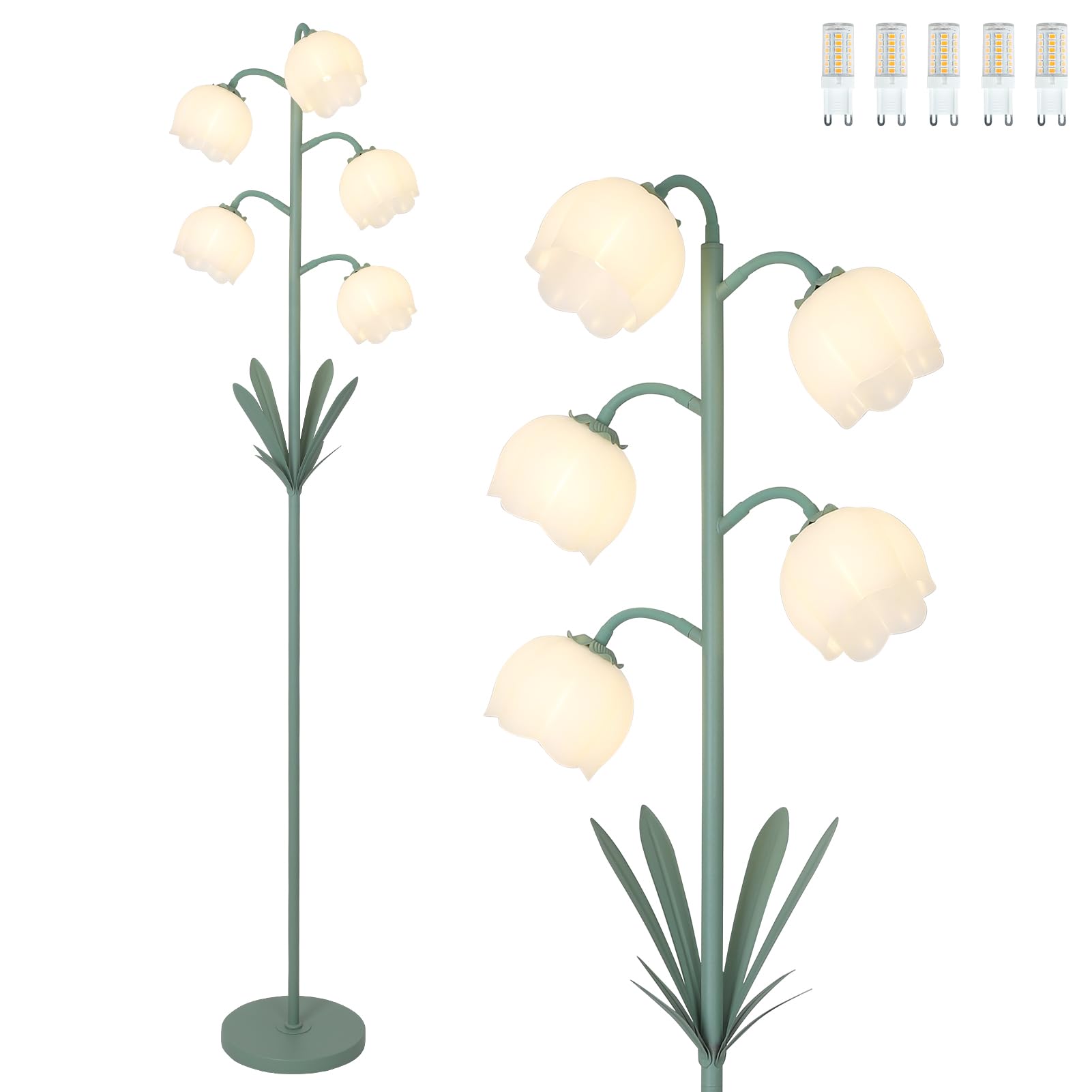 Artmooy 5-Lights Flower Floor Lamp with LED Blubs, Green Modern