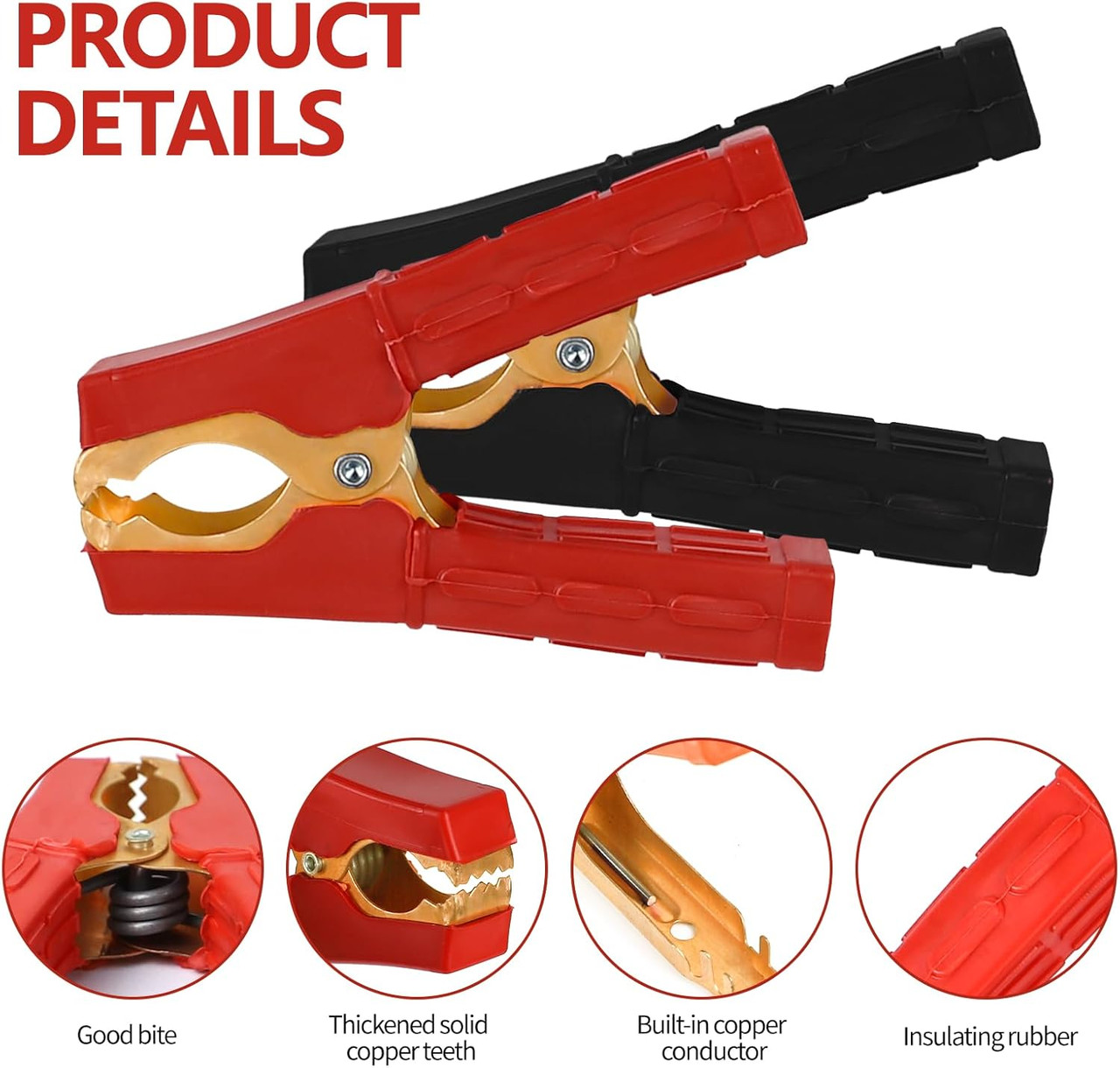 - ✅ High Performance Copper Clamps: Made of pure copper for excellent electrical conductivity and stable current transmission, minimizing energy loss