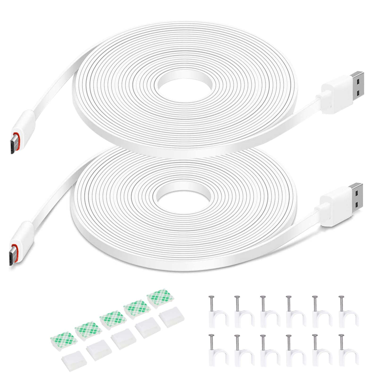 DIANMU 2Pack 20FT Flat Power Extension Cable for Wyze Cam 20 FT, White