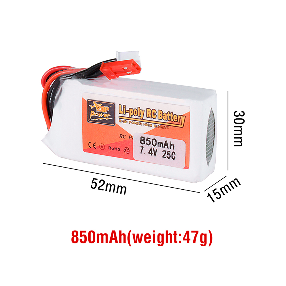 1. 7.4V 850/1000mAh Lipo Specification - Battery Voltage: 7.4V; Capacity: 850/1000mAh; Discharge: 25C; Plug: JST Connector.