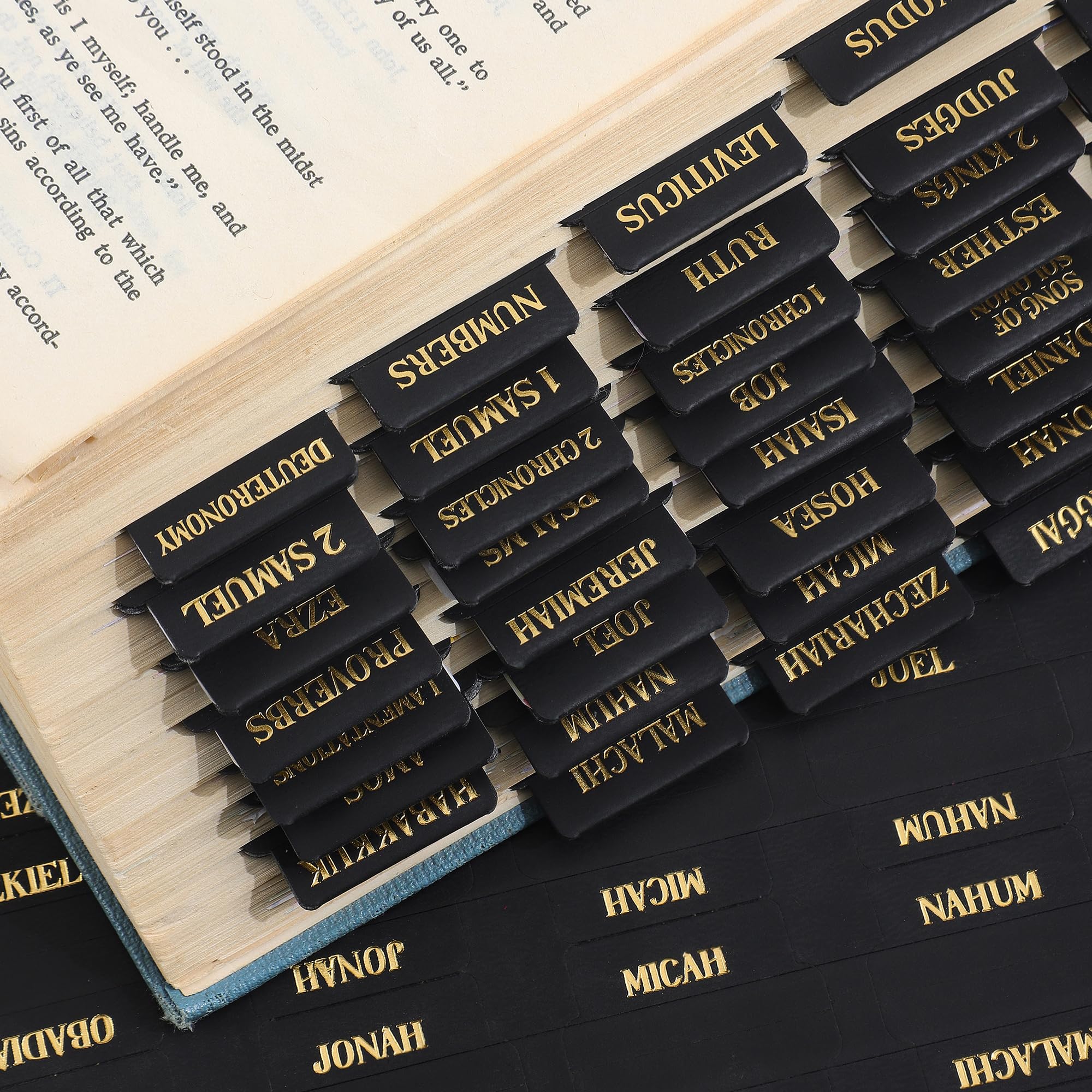 Leather Bible Tabs, Bible Tabs for Women and Men(Gold Foil Lettering) Large Print Stickers, Easy to Read and Apply, 66 Chapters & 14 Blank DIY Labels for Easy Navigation, Christian Accessories(Black)