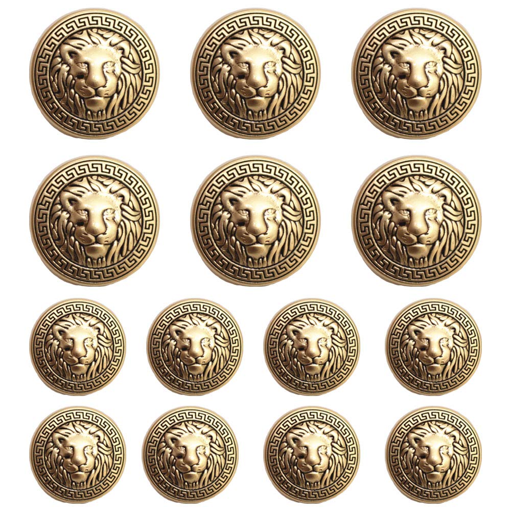 MebuZip 14 Pieces Lion Gold Metal Blazer Button Set 15MM 20MM for Blazers, Suits, Sport Coats, Uniform, Jackets (MBM23)