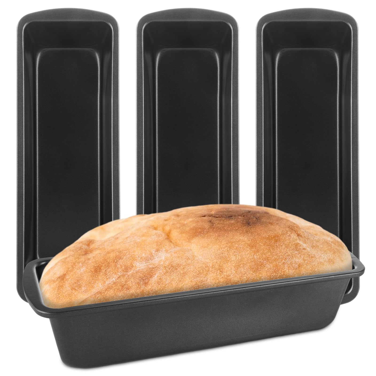 - Size & Package: Package includes 4 pack Bread Loaf Pan with outer dimensions of 10.9x3.7x2.4 inch. Large size and capable of making multiple breads at the same time. Ideal for baking delicious bread, meatloaf, sandwiches, cakes, lasagna, and more in the oven.