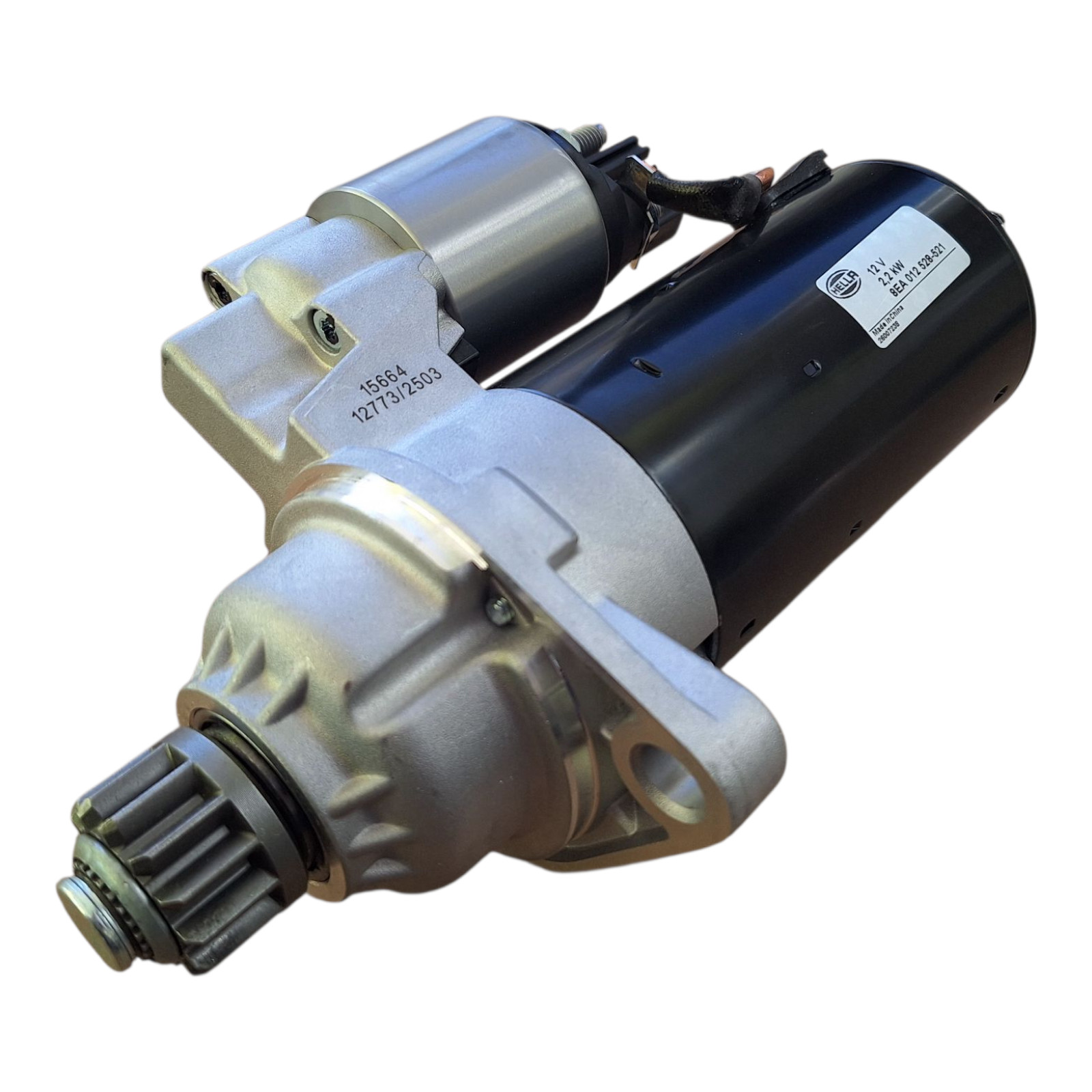 Neuer Hella Anlasser (Starter) mit 12 Volt und 2,2 kW Leistung, passend für diverse Audi, VW, Seat und Skoda Modelle mit 2.0 TDI Motoren.