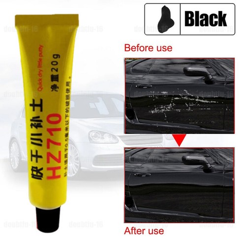 Features: Color: Black Type:car depth scratch repair putty Material:synthetic resin pigment filler Description: 1.100% new quality. 2.Repair scratches from your car, motorbike and other metallic surfaces yourself at home, applied for most auto car paint damage repairing. 3. Operation instructions: 1. Basic treatment: firstly grind the depression and scratch with 320# sandpaper, the grinding area must be slightly larger than the depression or scratch, and then wipe the dust with a clean cloth. 2. Filling the landfill: Excavate the appropriate amount of soil and scrape it with a small scraper. The scraped soil should be a thin layer. Don't be thick. If it is thick, it may not dry. Because the soil is solidified and dried quickly, do not use the scraper to scrape back and forth repeatedly to avoid coating fuzzing, cracking and falling off. 3. Filling the soil: After about 1 hour, use 400#~1000# sandpaper to polish and smooth. Repeat steps 2-3 when there are bubbles or small scratches after sanding. 4. Note: -1.The use of this product in addition to automotive refinish should be tested first. -2.Pay attention to ventilation at the construction site. -3.If the soil is too thick, the inside may not be dry, so the thickness of the application should be within 1mm. -4.Used tools should be cleaned up in time for convenient next time use. 5. Tips: The soil is only suitable for scratches and sandpaper below 0.5mm. If it is larger, please fill it with the atomic ash and then use the soil. Package included: 1* quick-drying putty 1* small scraper 1* small ash board 4*small water sandpaper