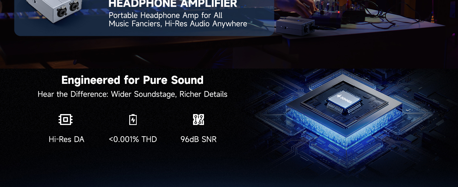 【 Practical interface 】This Headphone amp has XLR and TRS input connector with locking mechanism, Stereo/mono source switch depending on cable connection.Two independent headphone output,can be used simultaneously with two pairs of headphone.Mono/Stereo switch to adjust the image according to different input signals.Mix adjusts the level ratio of two balanced input.