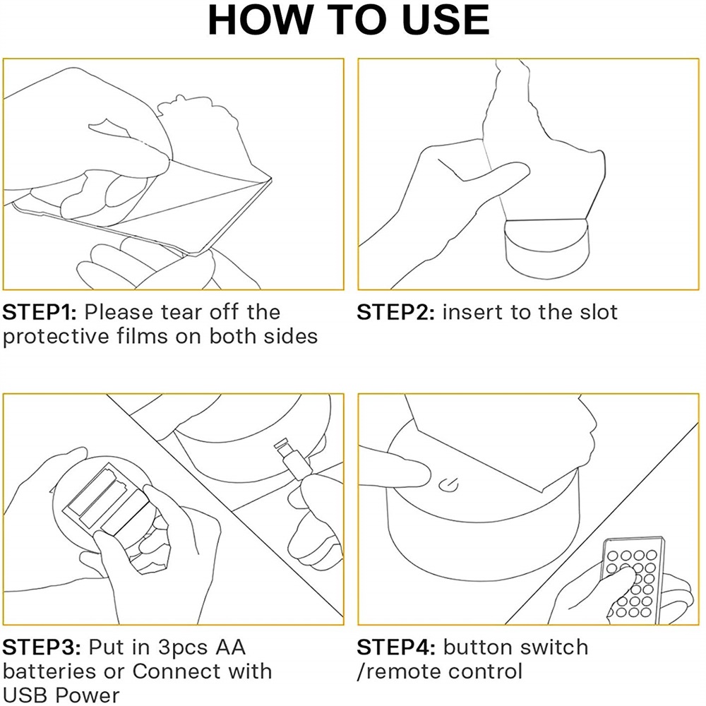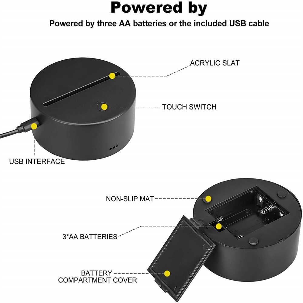 Lamp base Battery needed: USB power or 3pcs AA batteries(NOT Included)
