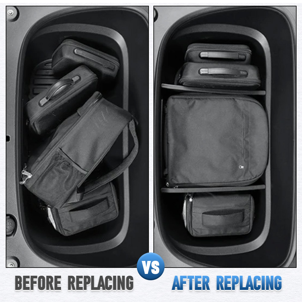 Organized Partitioning: This Front Trunk Storage Partition is designed to divide the front trunk into three independent sections, making it easy to separate groceries, tools, cleaning supplies, or travel items without mixing together