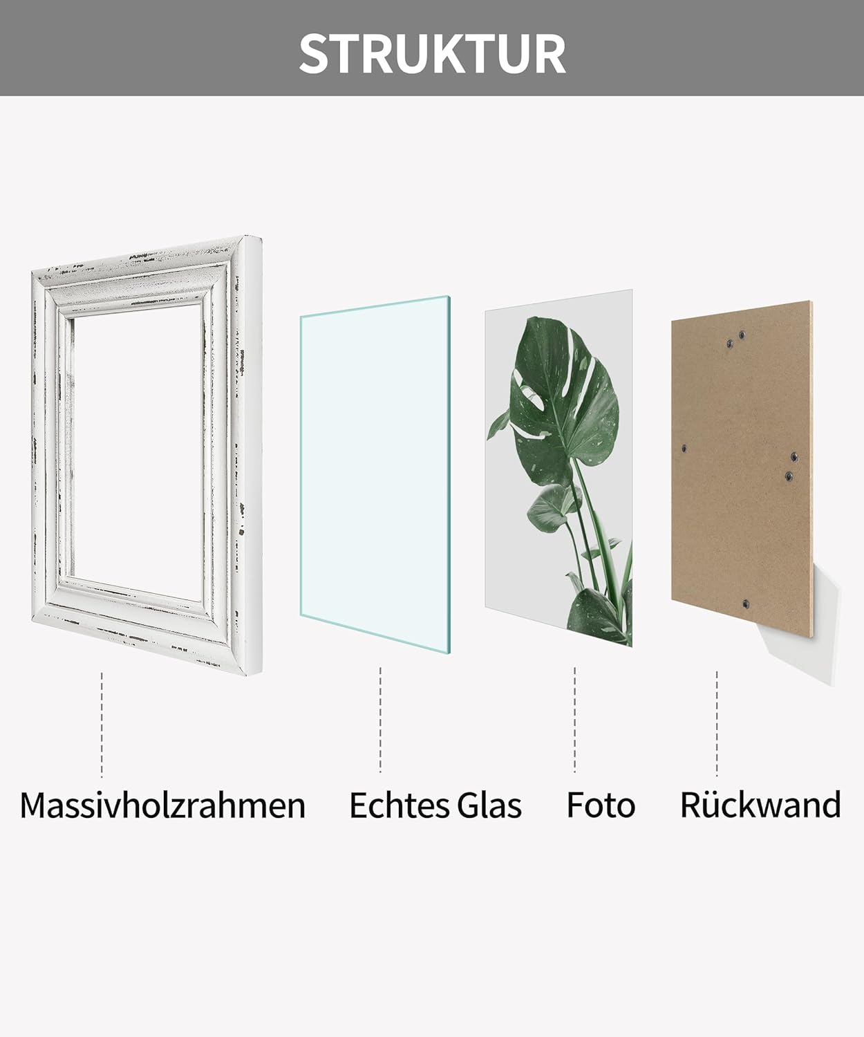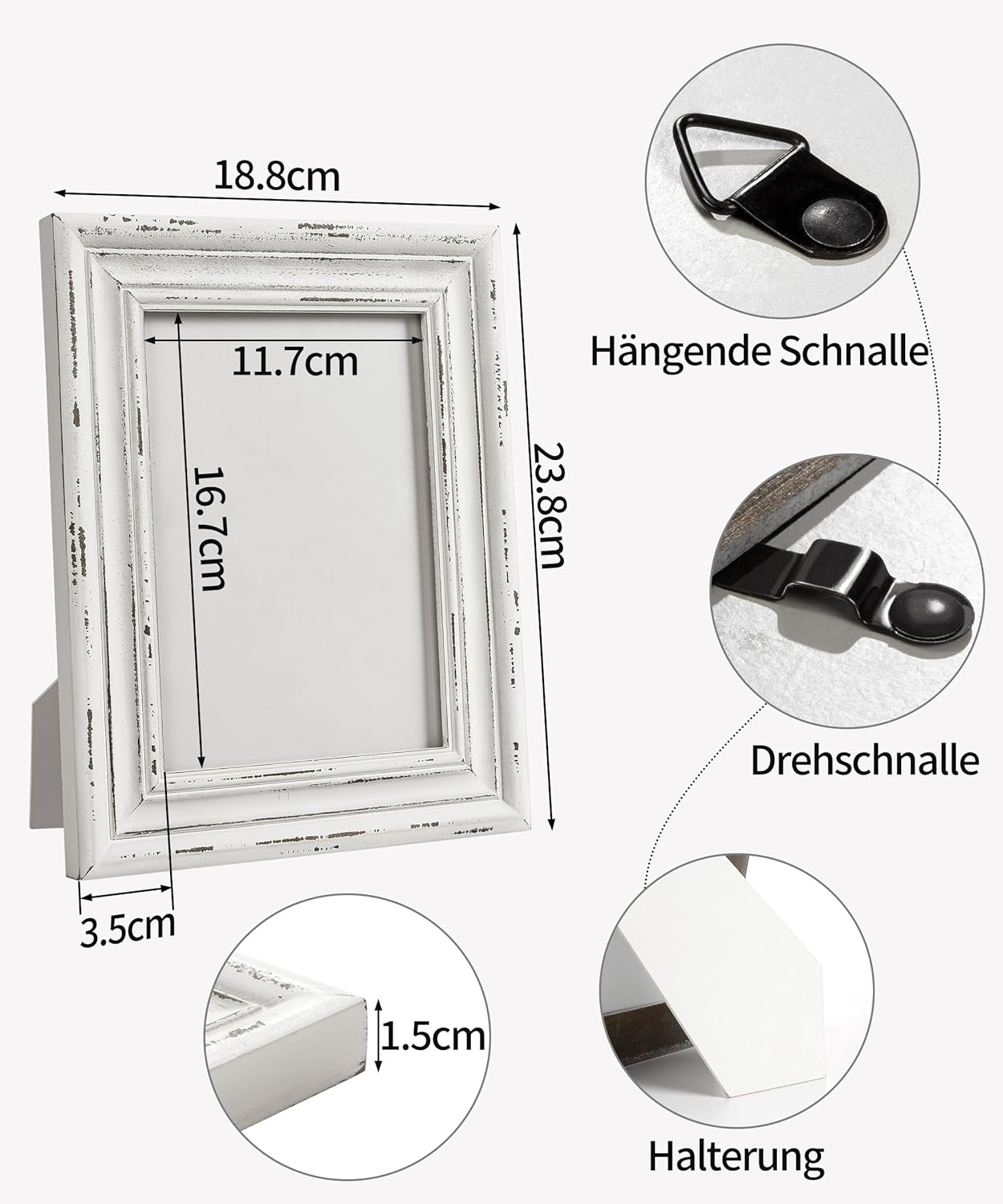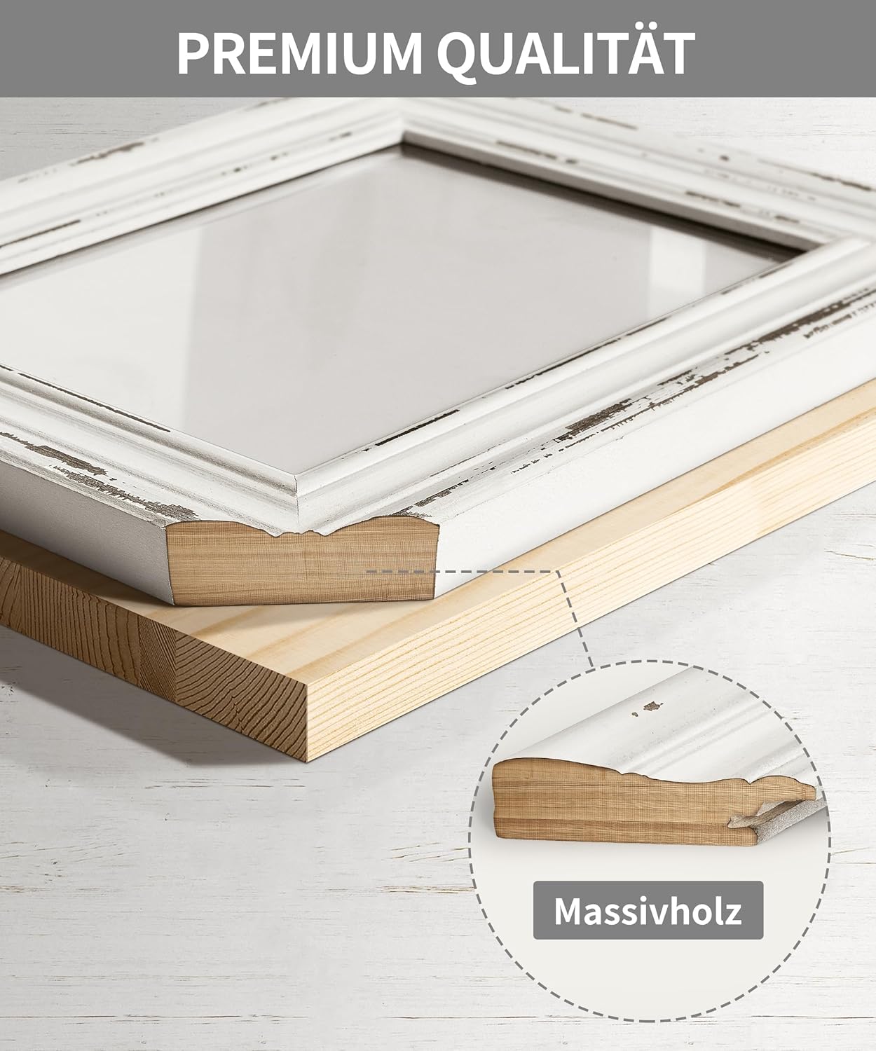 L'élégance antique rencontre le charme moderne. La finition blanche du cadre 13 x 18 cm avec effet vieilli donne à vos photos un look rétro unique. Chaque cadre en bois de pin apporte l'atmosphère d'une époque révolue.