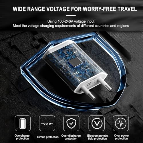 Protection de Sécurité : Le chargeur USB détecte automatiquement le courant d’entrée requis par l’appareil connecté. Les fonctions de sécurité intégrées protègent votre appareil contre les surintensités, la surchauffe et la surcharge.