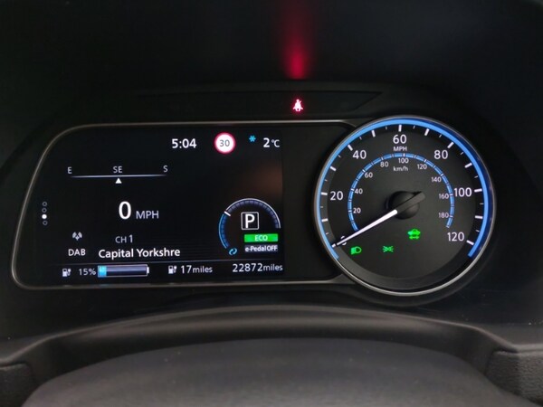 Nissan connect services with nav, 8"" touchscreen navigation and entertainment system, Apple car play/Android Auto, Tech Pack - Leaf, Heat pack - LEAF, 7"" Combimeter, Blind spot intervention, Intelligent Cruise control (ICC), Voice control system, AM/FM/DAB audio system, Automatic rain sensing wipers, Rain sensor, Automatic air conditioning with timer and heater, Isofix child seat anchor points, 17"" Alloy wheels