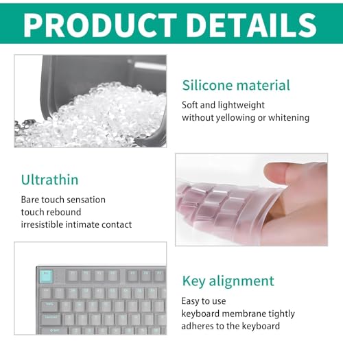 Matériel en silicone de haute qualité: Nos couvertures de clavier sont fabriquées en silicone technique, doux, flexible et respectueux de l’environnement. Ce matériau durable offre une surface antidérapante et une sensation de basculement agréable sans compromettre le mouvement des touches.