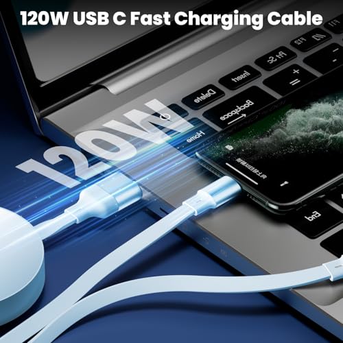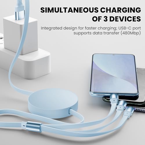 RUIZHI Câble de Charge USB 3 en 1-120 W - Câble de Charge Rapide - Universel - Rétractable - Compatible avec Phone, Ordinateur Portable, Pad, Galaxy S23, S22 - Bleu