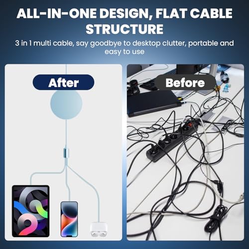Parfait pour les voyages et plusieurs appareils : avec ce câble de charge multiple 3 en 1, vous restez organisé même en déplacement. Que ce soit dans la voiture, l’avion, l’hôtel ou le bureau, ce câble de charge multi-USB alimente vos appareils. Compact, léger et portable, le câble de charge ultime pour plusieurs appareils. Vous n’aurez plus jamais besoin de transporter un câble différent pour chaque appareil.
