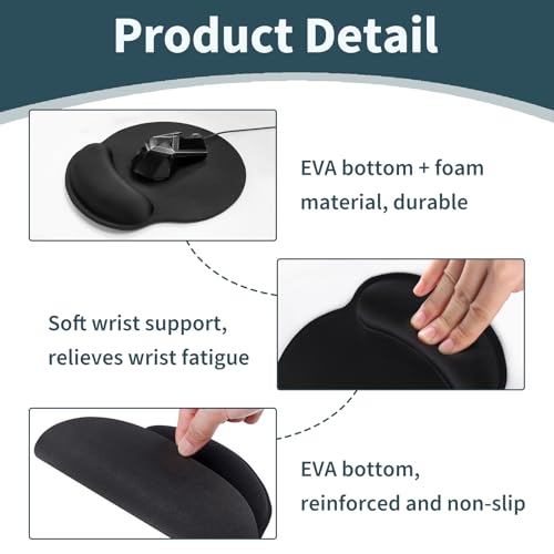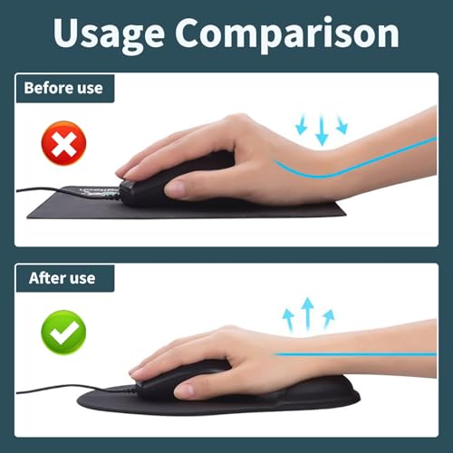 Confort ergonomique optimal: Le tapis de souris ergonomique à mémoire épouse la forme de votre poignet, réduisant la pression et améliorant le confort pour une utilisation prolongée sans douleur ni inconfort.