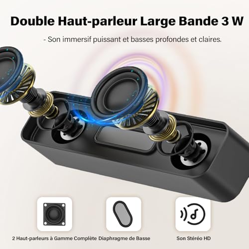 【HIGH QUALITÉ DU SON】- le double haut-parleur 3W intégré vous permettra d’entendre plus clairement et plus loin. Même au volume maximum, la partie aiguë n’est pas déformée et la partie grave reste toujours douce. Vous pouvez ainsi profiter du plaisir de la qualité des aigus à ce moment-là.