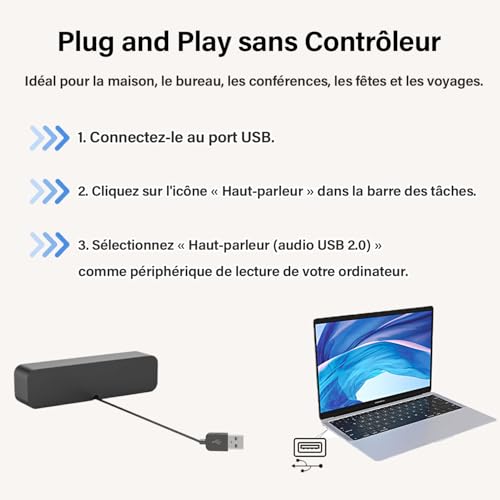 【EASY à USE】- Plus besoin de prise AUX 3,5 mm ou de pilotes. Il suffit de brancher ce haut-parleur à votre ordinateur et de cliquer sur le bouton pour le faire jouer, ce qui vous procurera un plaisir de haute qualité. Un seul câble résout tous les problèmes.