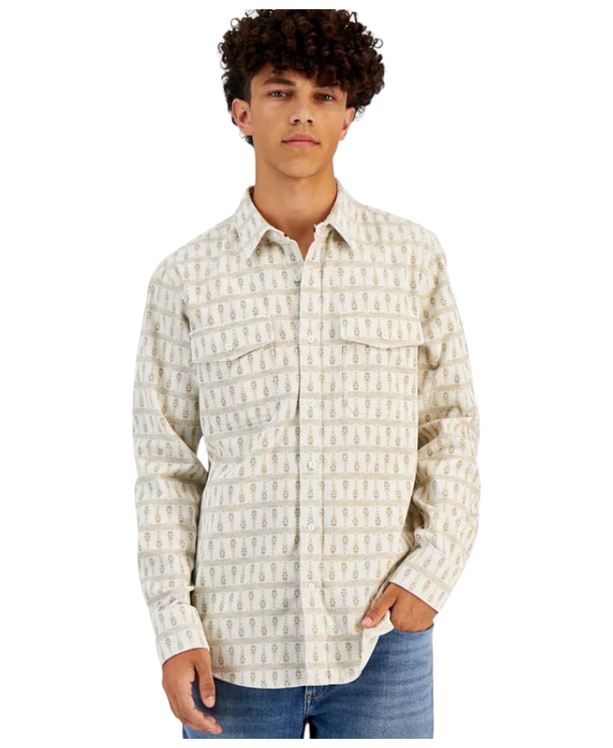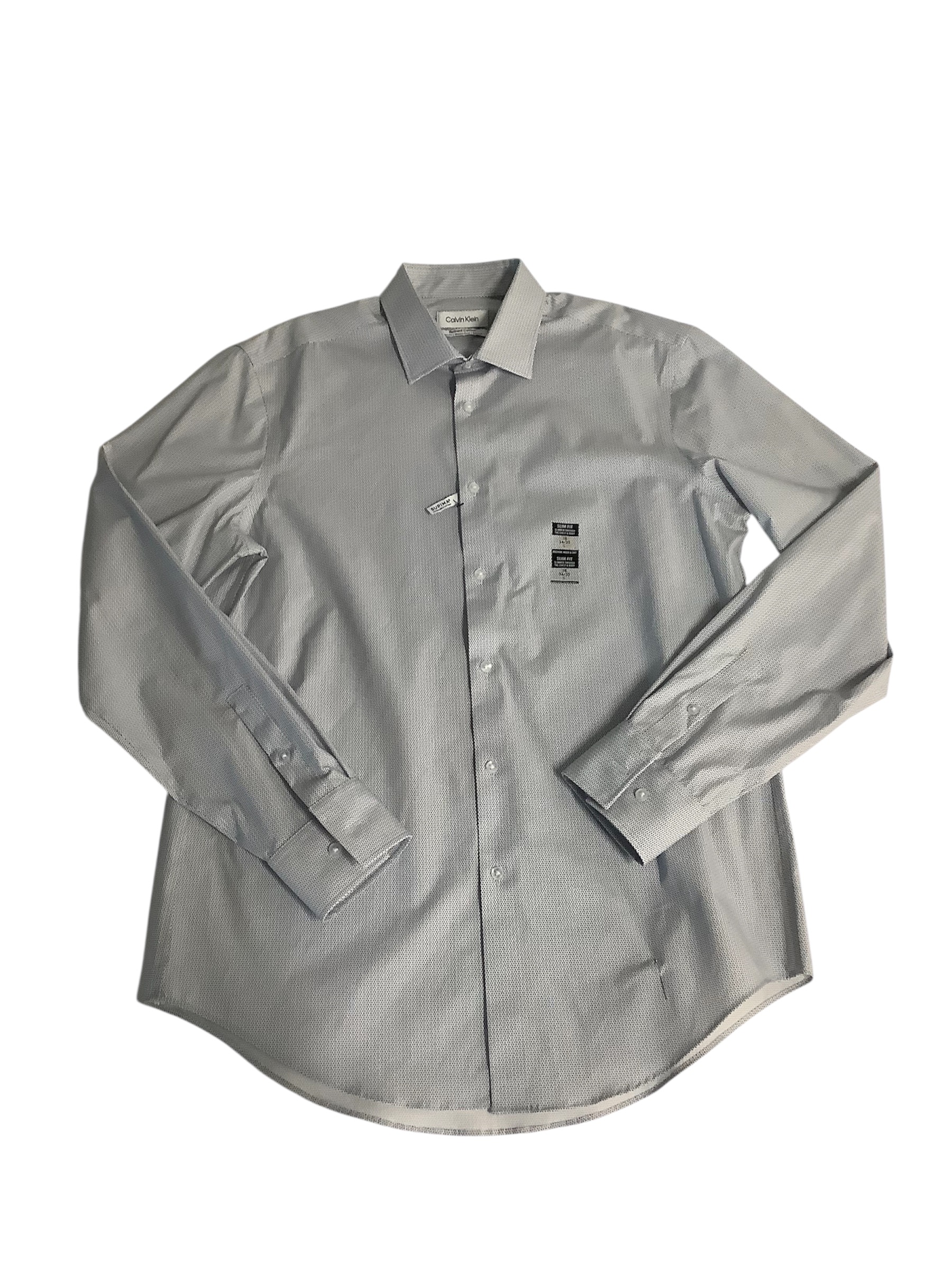 Calvin Klein Mens Slim fit Dress Shirt Large 16 in 34-35 White Geometric