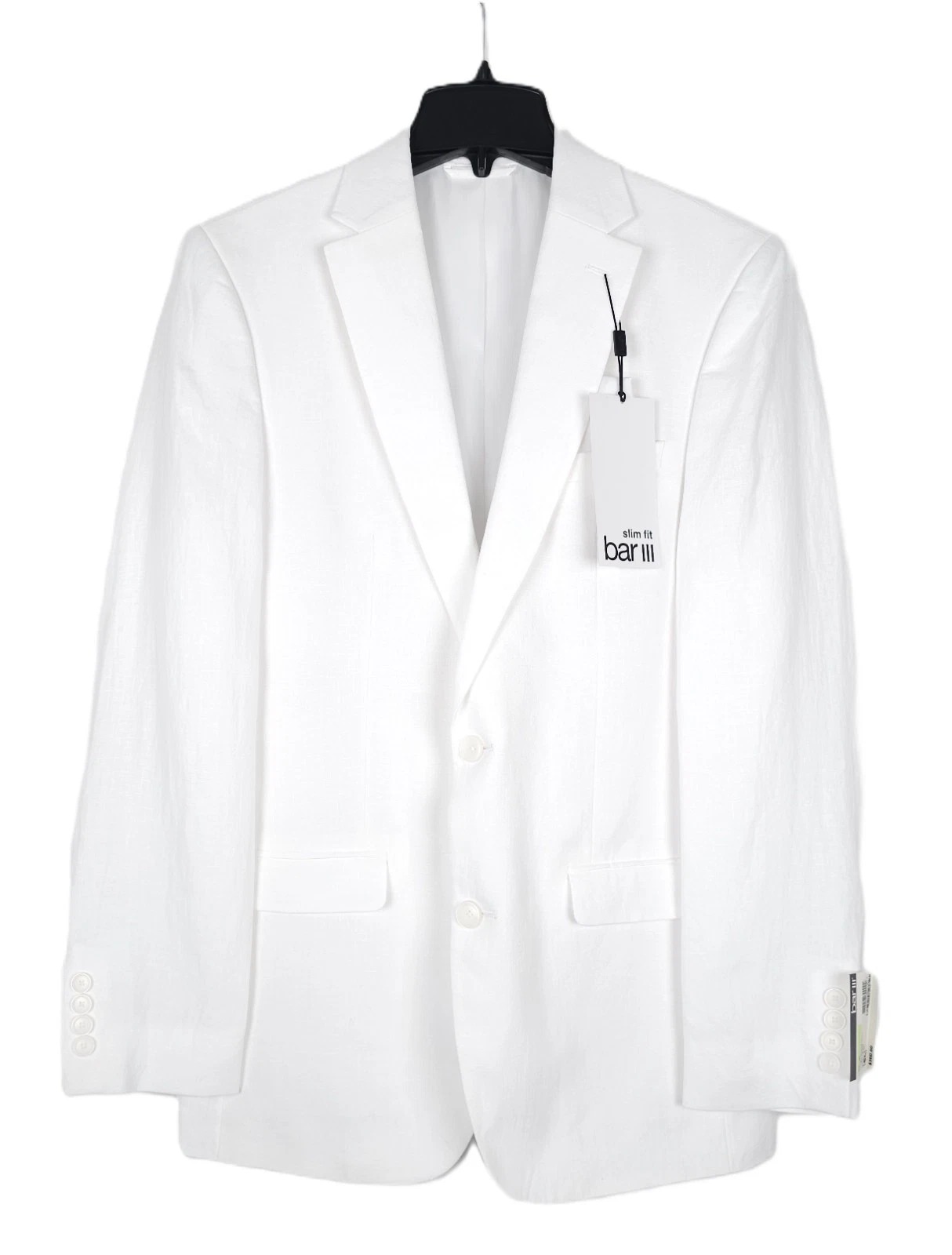 Bar Iii Mens Slim fit Suit Jacket Blazer 44 S White Solid Linen