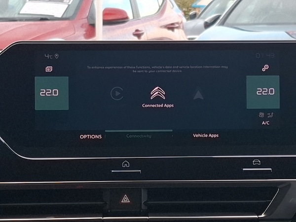 10"" high resolution touchscreen user interface, controlling media, connectivity and vehicle settings, 5.5 inch backlit full TFT driver's instrument cluster with LED ambient lighting, Active blind spot detection, Apple car play and Android auto, Citroen connect box emergency and assistance system, Citroen connect nav with real time traffic and speedcam, Citroen Smart Pad Support - integrated support for attaching a tablet computer for front passenger, Top rear vision reversing camera, Bluetooth telephone and audio streaming, DAB Digital radio, Automatic headlights, Electrically heated, folding and adjustable external rear view mirrors with courtesy lighting