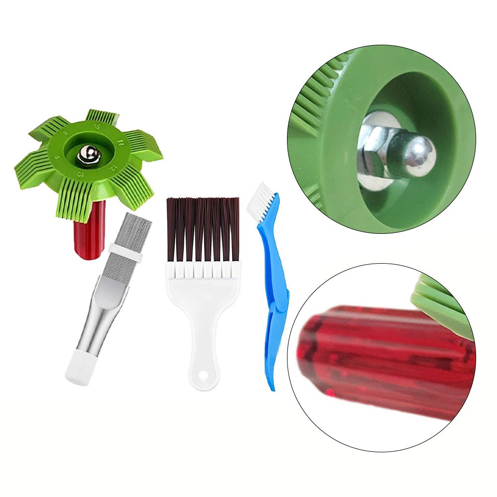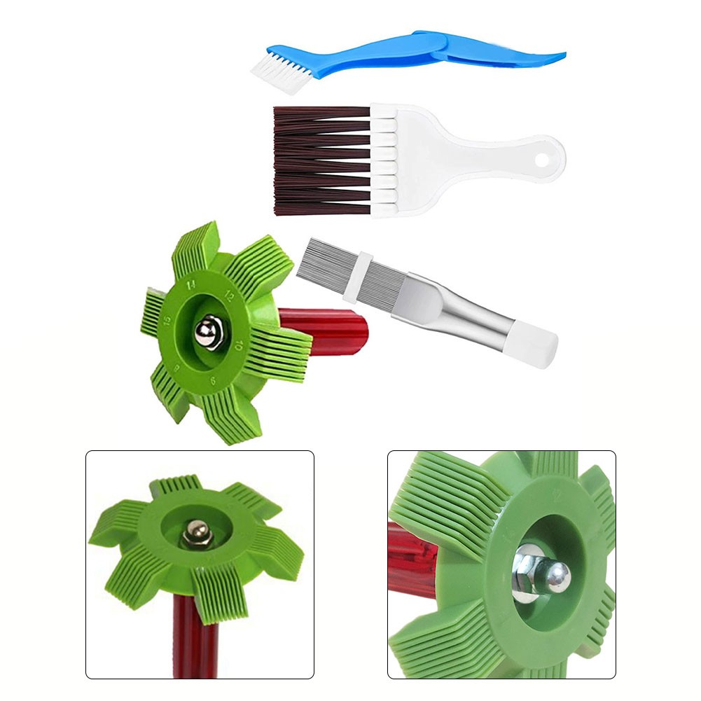 × brosse de nettoyage des ailettes de climatiseur x peigne à ailettes en acier inoxydable x brosse verte x brosse bleue