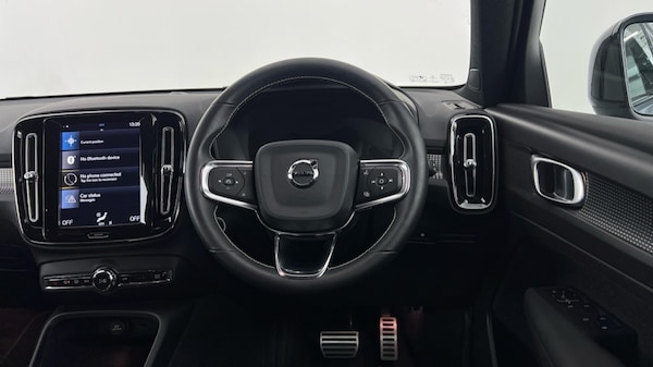 ..Door Mirror Covers. 019 Black Stone, ''CleanZone'' Air Quality System and Pollen Filter, 12.3 Active TFT Crystal Driver's Information Display, 12v Socket - Cargo Area, 19'' 5 Double Spoke (Diamond Cut/Matt Black), 2-Zone Electronic Climate Control, 4-Way Lumbar Support, 7-speed Dual Clutch transmission, 7m 10amp Charge Cable with 3 Pin Plug, 9'' Centre Console Portrait Touch Screen, Adjustable Speed Limiter, Adjustable Steering Force, Adjustable passenger seat, Anti-theft Alarm including Immobiliser. Volume Sensor and Level Sensor, Autodimming Interior Mirror, Automatic LED Headlights with Active High Beam incorporating Day Running Lights, Automatic door locking, Bluetooth Handsfree System, Centre armrest with cupholders, Cruise Control, DAB (Digital Audio Broadcasting) Radio, Dark Tinted Windows - Rear Side Doors and Cargo Area, Double locking, Drive Mode Settings, Driver Alert Control with Lane Keeping Aid, Driver Knee Airbag, Dual Stage Driver and Passenger Airbags, EBL. Flashing Brake Light and Hazard Warning, Five individual seats, Fixed Foldable Rear Headrests, Front LED Foglights, Front Park Assist, Front seats, Glossy Black Window Trim, GloveBox Bag Hook, Hidden tail pipes, High voltage coolant heater (HVCH), Hill Descent Control, Hill Start Assist, Humidity sensor, ISOFIX Attachment (Outer Rear Seats), Illuminated Vanity Mirrors, Inflatable Curtain, Load Protection Net, Locking Wheel Nuts, Manual seat cushion extension. driver seat, Oncoming Lane Mitigation, Passenger Airbag Cut Off Switch, Perforated Leather Steering Wheel, Plastic protection cap, Power Operated Tailgate, Power retractable door mirrors, Rain Sensor - Automatic Windscreen Wiper Activation, Rear Footwell and Side Step Illumination, Rear Park Assist Camera, Recharge aluminium front tread plates, Recharge embossed logo on C/D-pillar, Road Sign Information Display, SIPS Airbags (Front Seats), Sensus Connect with High Performance Sound with 8 Speakers/250W Output. 1x Front Type A and 2x Rear Type C USBs, Sensus Navigation, Sport Chassis, Sport Pedals, Sport Textile Mats. Charcoal, Steering Wheel Remote Infotainment Control, Tailored leather gear shift with contrasting seams, Tempered side windows, Tyre Sealant Kit with Compressor, Voice Activated Control for Key Functions, Volvo On Call with App, WHIPS (Whiplash Protection System) (Front Seats), Warning Triangle
