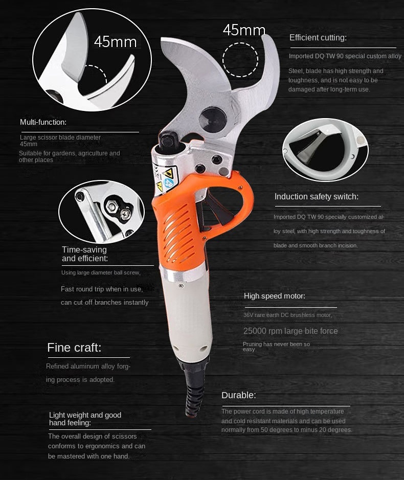 36v rare earth DC brushless motor, 25000 RPM /min big bite force pruning has never been so easy.