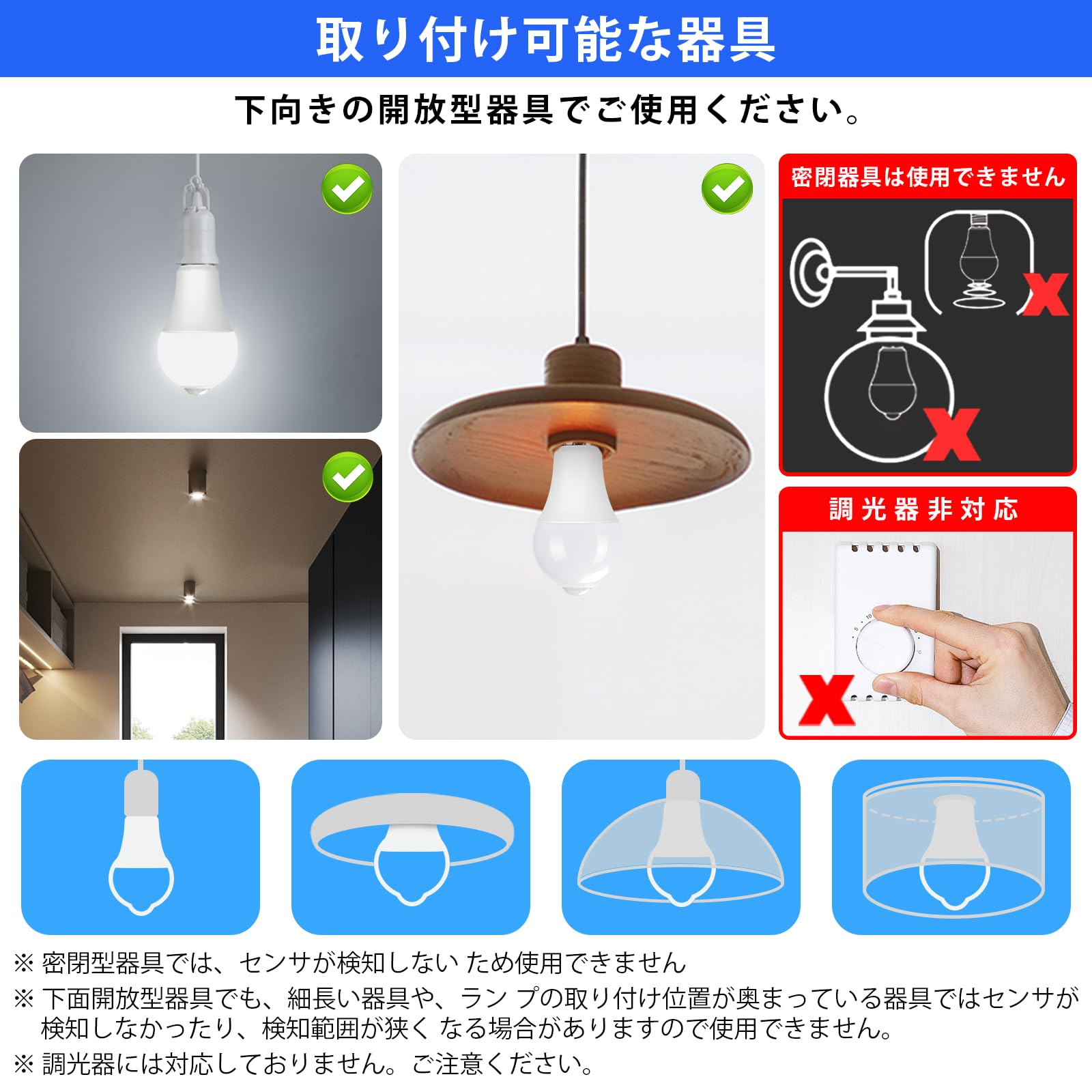 [Auto On/Off] This LED light bulb with a motion sensor automatically turns on when it detects motion. The light automatically turns off after approximately 30 seconds of no movement. Eliminate the hassle of forgetting to turn it off and the inconvenience of using it at night. Note: If it continues to detect movement, such as a person or animal, the light will remain on. No need to worry about it dimming midway.