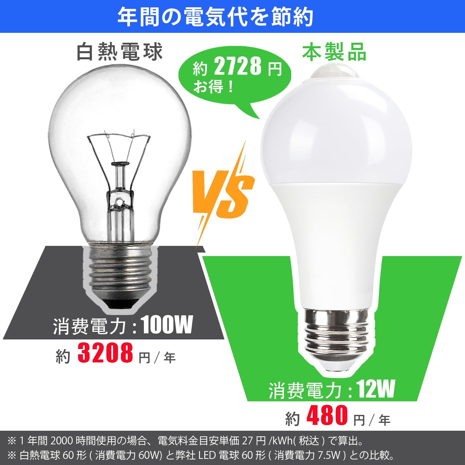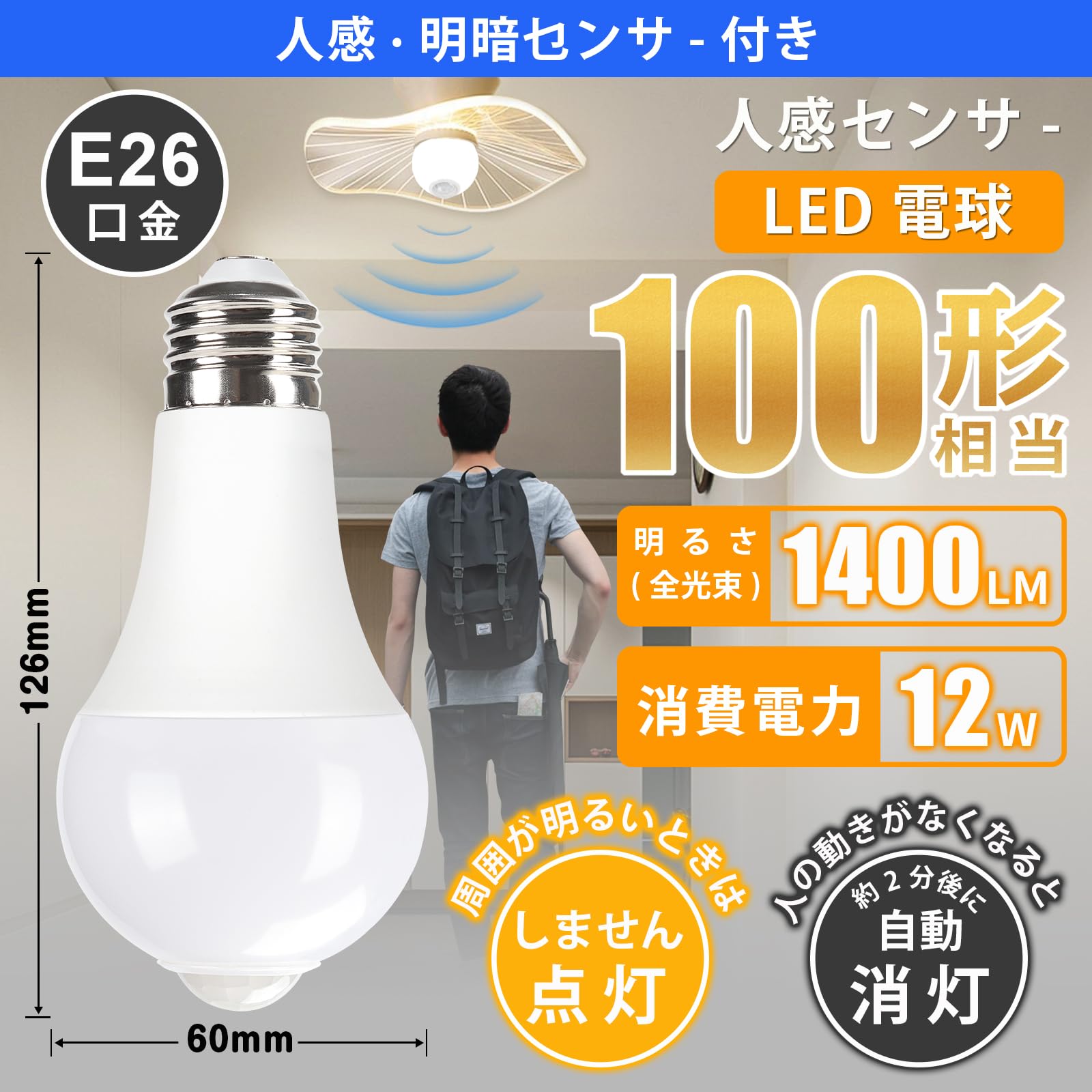 [Energy-Saving Measures] Equipped with a light sensor, the light will not turn on even if someone approaches in bright surroundings (15 lux or above). It remains off in bright surroundings. It consumes 12W of power and produces 1400lm of brightness. It reduces electricity bills by approximately 85% compared to traditional 100W incandescent bulbs, saving even more energy.