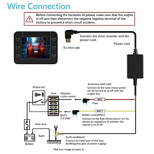 Un autre avantage du kit Hardwire est la fonction de surveillance du stationnement 24 heures. Cela vous permet de surveiller votre véhicule même lorsqu’il est garé et de capturer des enregistrements importants si nécessaire.