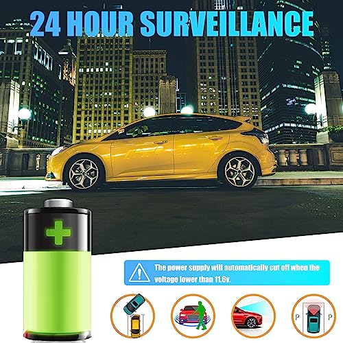 Protection basse tension : lorsque la tension de la batterie du véhicule est inférieure à 11,8 V (+-0,2), l’alimentation de la caméra embarquée est coupée et la batterie est protégée contre la décharge. Ne cause pas le problème de l’épuisement de la batterie de la voiture. Plus de protection de sécurité comme la surintensité, les courts-circuits, l’inversion de polarité et la surchauffe.