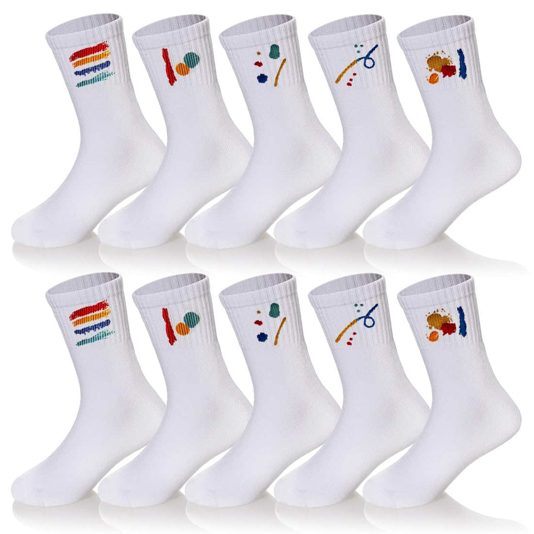 - Polyvalence : vous recevrez 5 paires de chaussettes de sport blanches style graffiti. Les chaussettes blanches peuvent être associées à différentes couleurs de chaussures et de vêtements. Les chaussettes de marin décontractées conviennent à toutes les saisons et à la plupart des occasions telles que le fitness, le tennis, les affaires, la course, la randonnée et les activités décontractées quotidiennes.