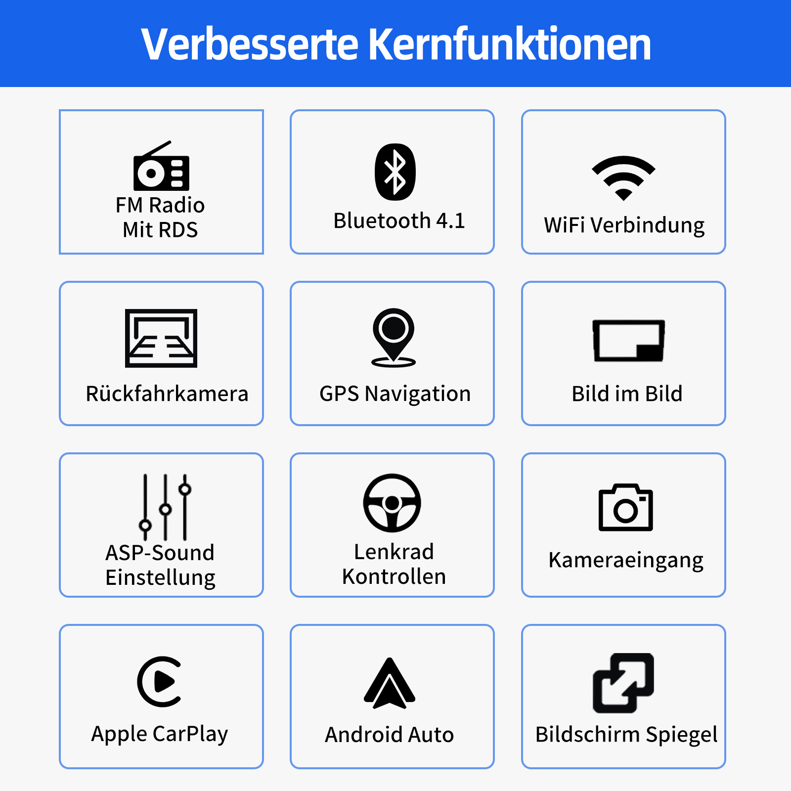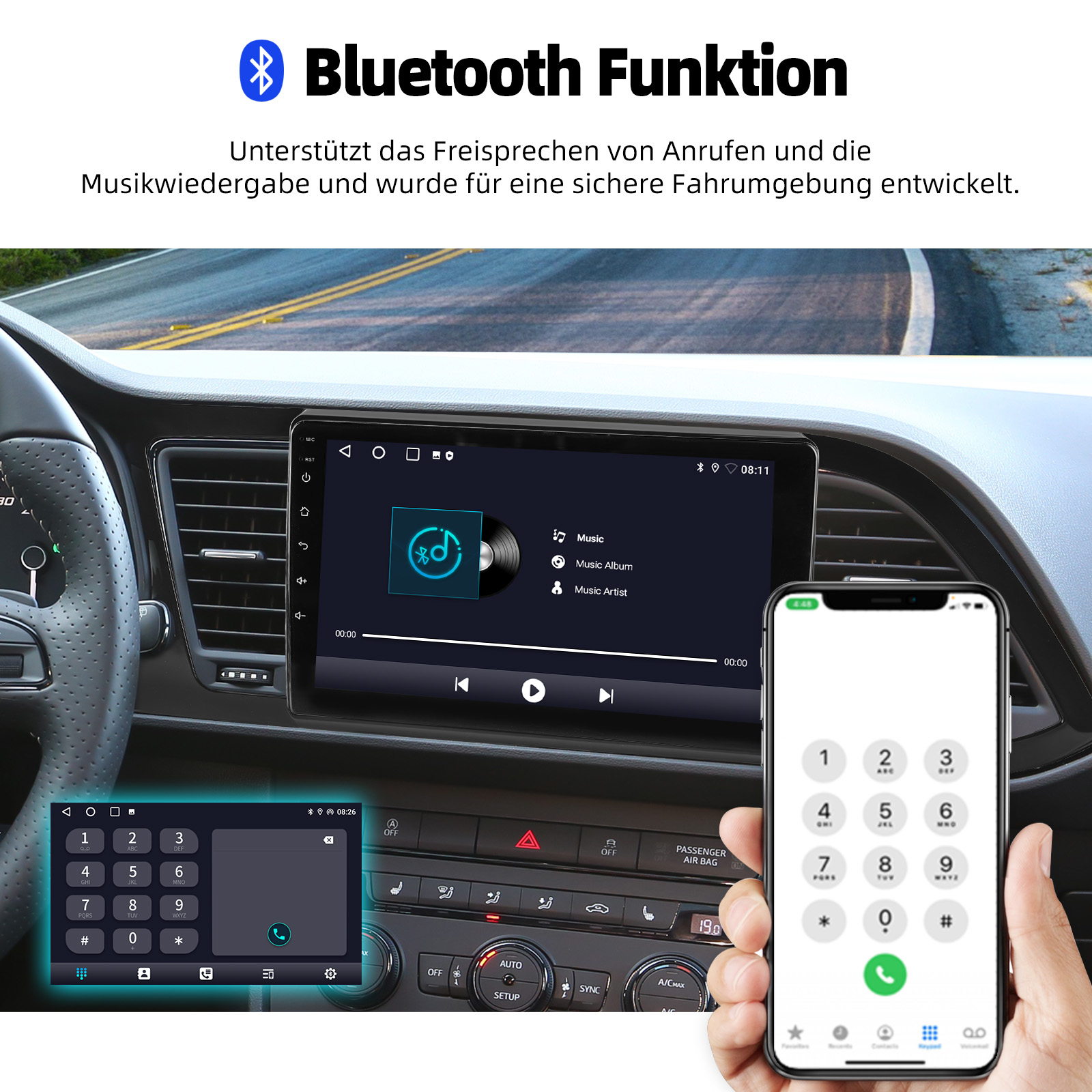 RDS/FM-Radio und Bluetooth: Integriertes Bluetooth 4.1 mit A2DP, unterstützt Bluetooth-Freisprecheinrichtung, Download von Telefonbuch-Anrufprotokollen, Audio-Streaming von Musik. Eingebautes Mikrofon, um Ihren Anruf klarer zu machen. UKW/RDS-Radio kann 30 gängige Sender mit hoher Stereoqualität voreinstellen, die vollautomatisch, halbautomatisch und präzise nach Kanälen suchen können.