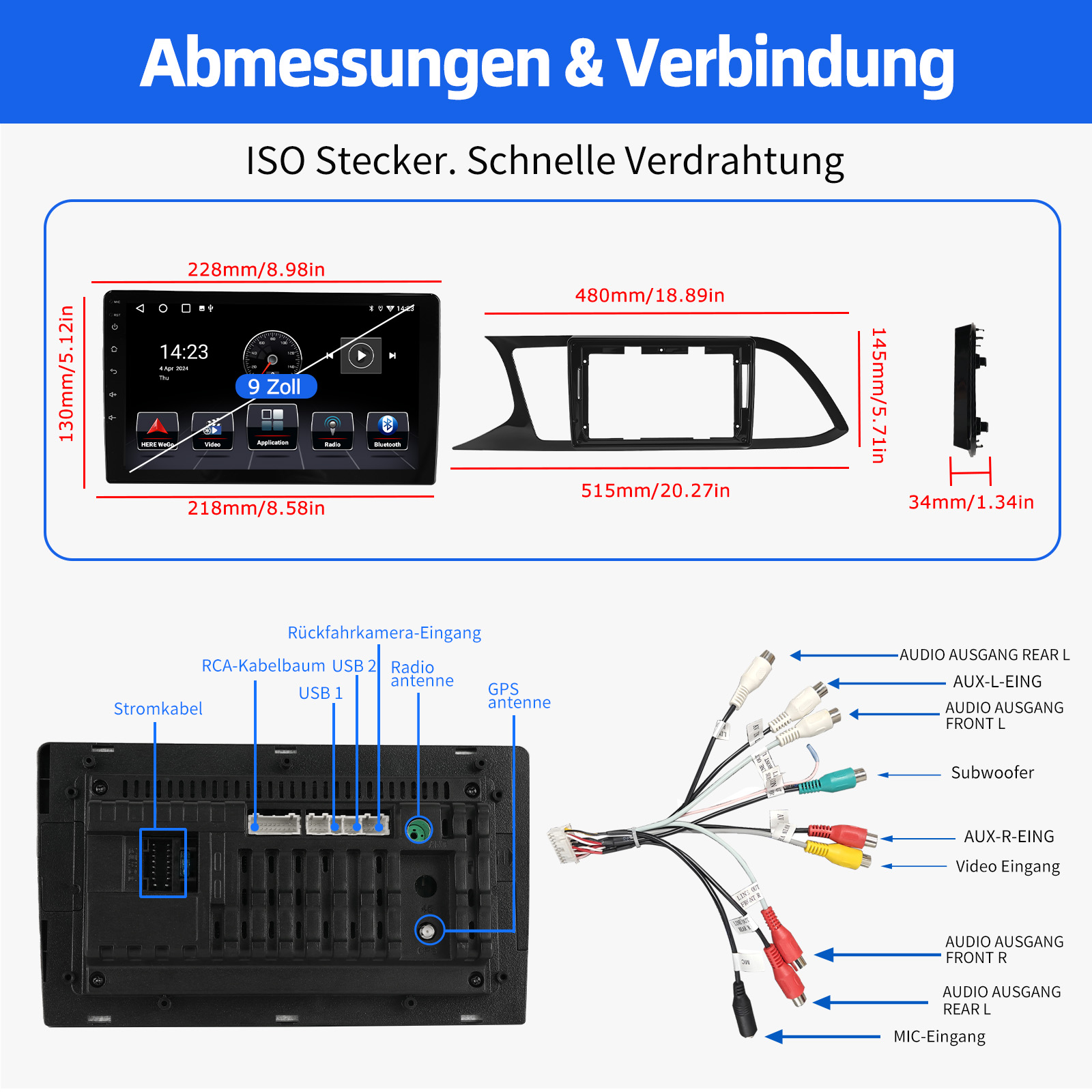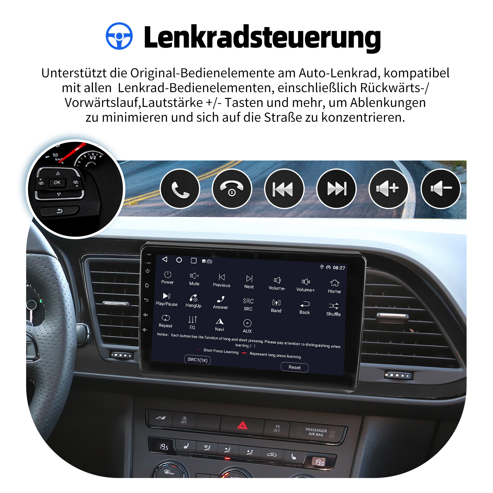 AHD Rückfahrkameraeingang und Lenkradkontrolle: Nach dem Anschluss an die Rückfahrkamera. Das Radio zeigt automatisch das Rückfahrbild an, sobald Sie den Rückwärtsgang einlegen. Machen Sie Ihr tägliches Rückwärtsfahren sicherer. Unterstützt AHD-Kamera. Unterstützt die originale Auto-Lenkradsteuerung (wenn Ihr Auto Canbus nicht unterstützt und SIE die Lenkradtasten lernen), um das Fahren bequemer und sicherer zu machen.