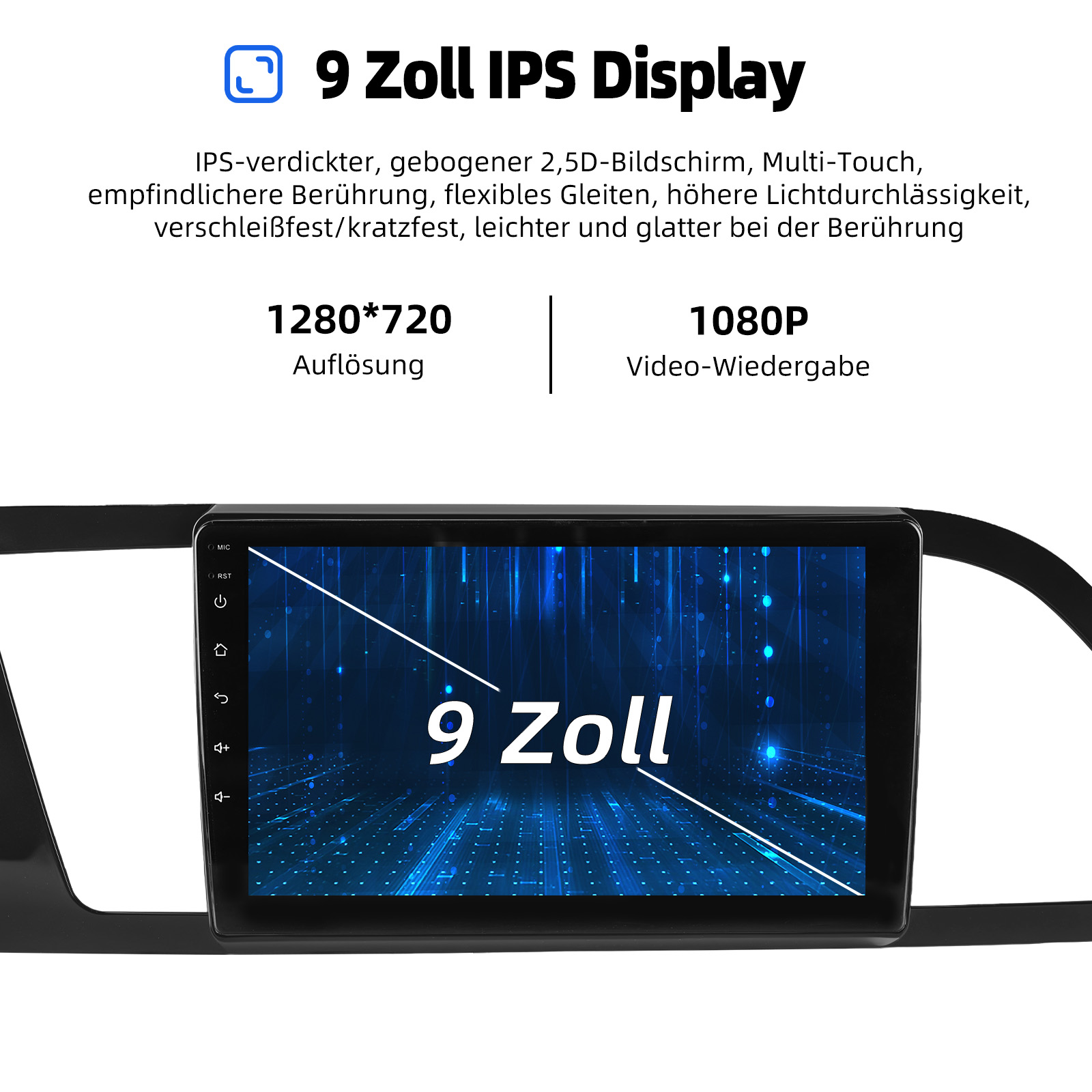 Bildschirm: 1280x720 IPS kapazitiver Touchscreen,178° Betrachtungswinkel, der Effekt der seitlichen Ansicht