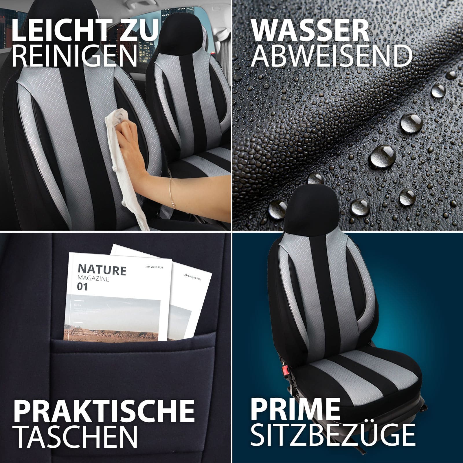 Prime Sitzbezüge sind so konzipiert, dass sie auf alle gängigen Standardautositze passen. Sie bieten optimalen Schutz und eine passgenaue Form, die den Sitzkomfort nicht beeinträchtigt.