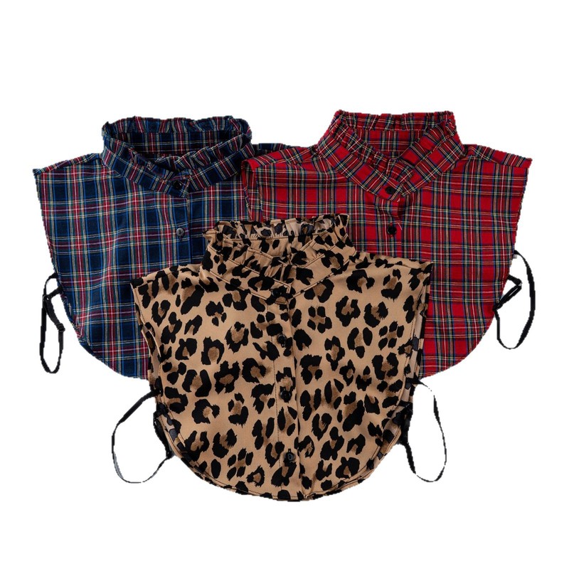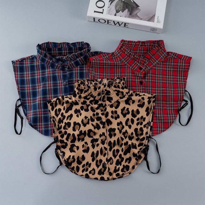 1Pc Womens Fake Collar Plaid Check Pattern Dickey Collar Half False Shirt Blouse
