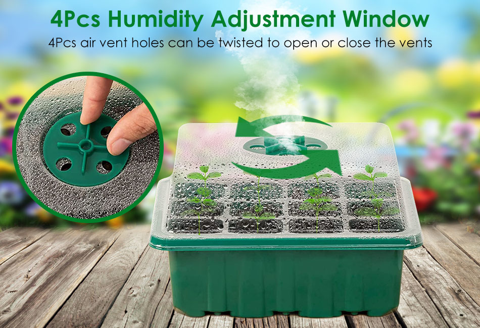 - *4Pcs Humidity Control Vents:Come with 4Pcs adjustable vents and they attach on the tray cover,our tray will help you to control the temperature and moist of your seedling environment,so you have total control over the germination process.