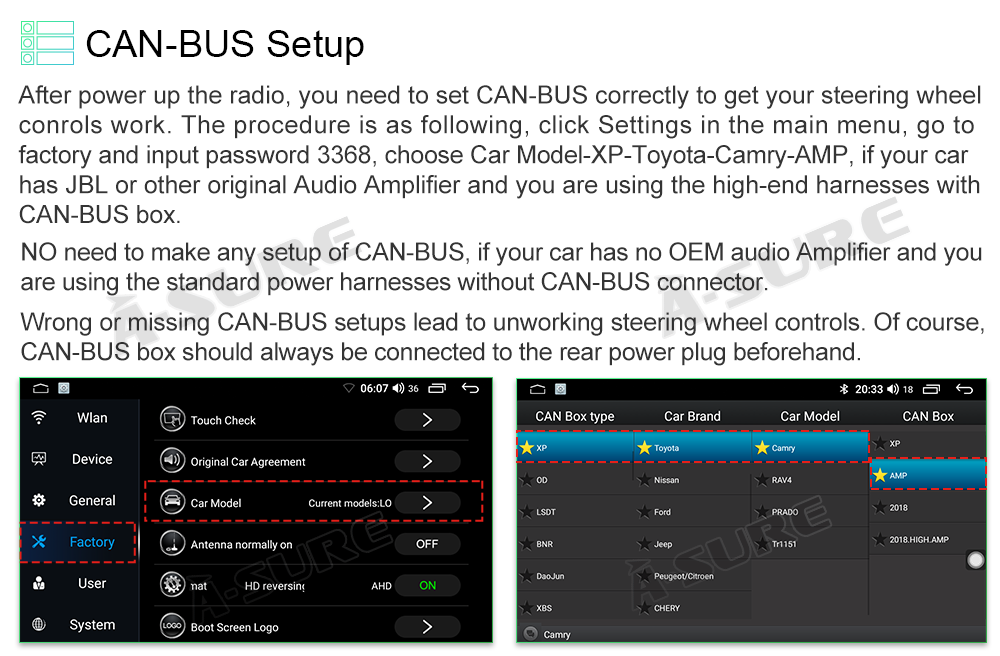 Factory setting password: 3368