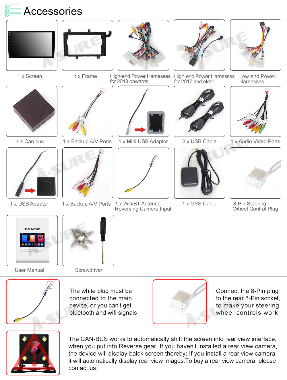 - Rear View function: Support aftermarket rear view camera, backing car more safer and convenient.