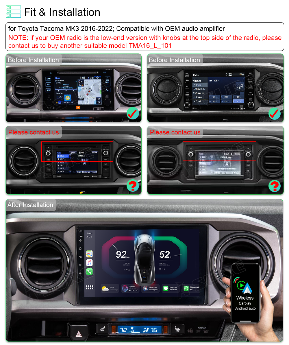 If your OEM radio has knobs on the top, please contact us to buy another model.