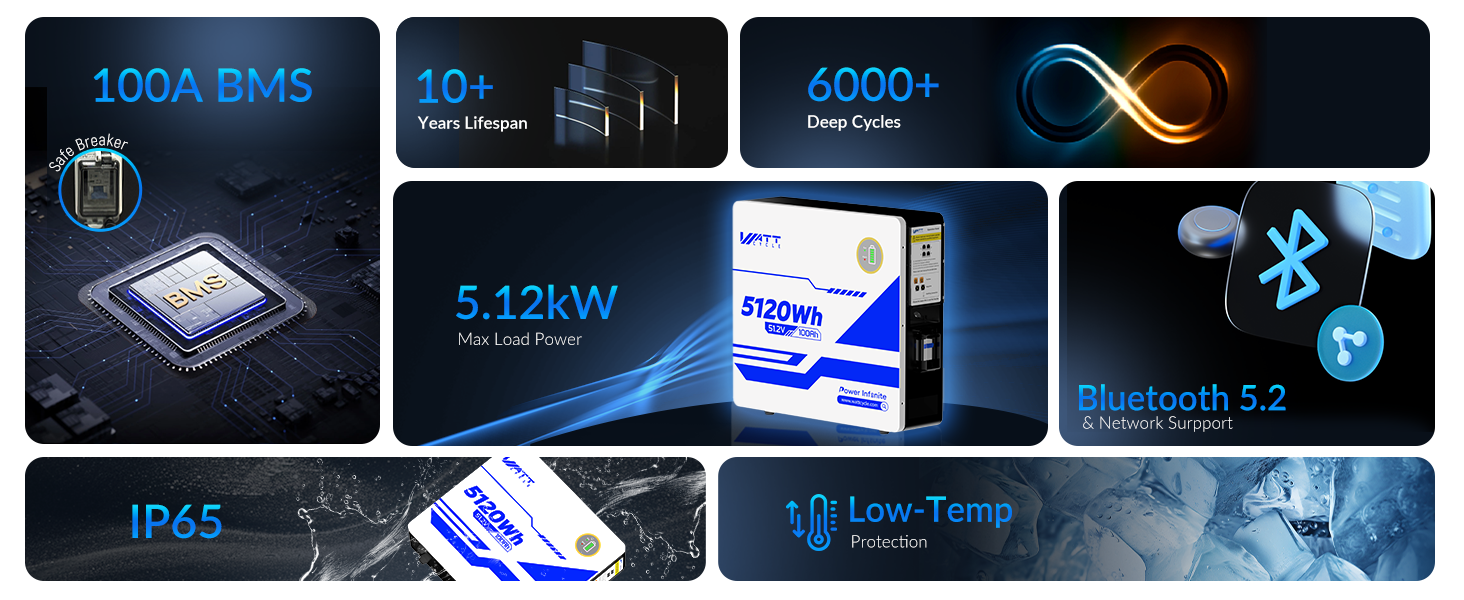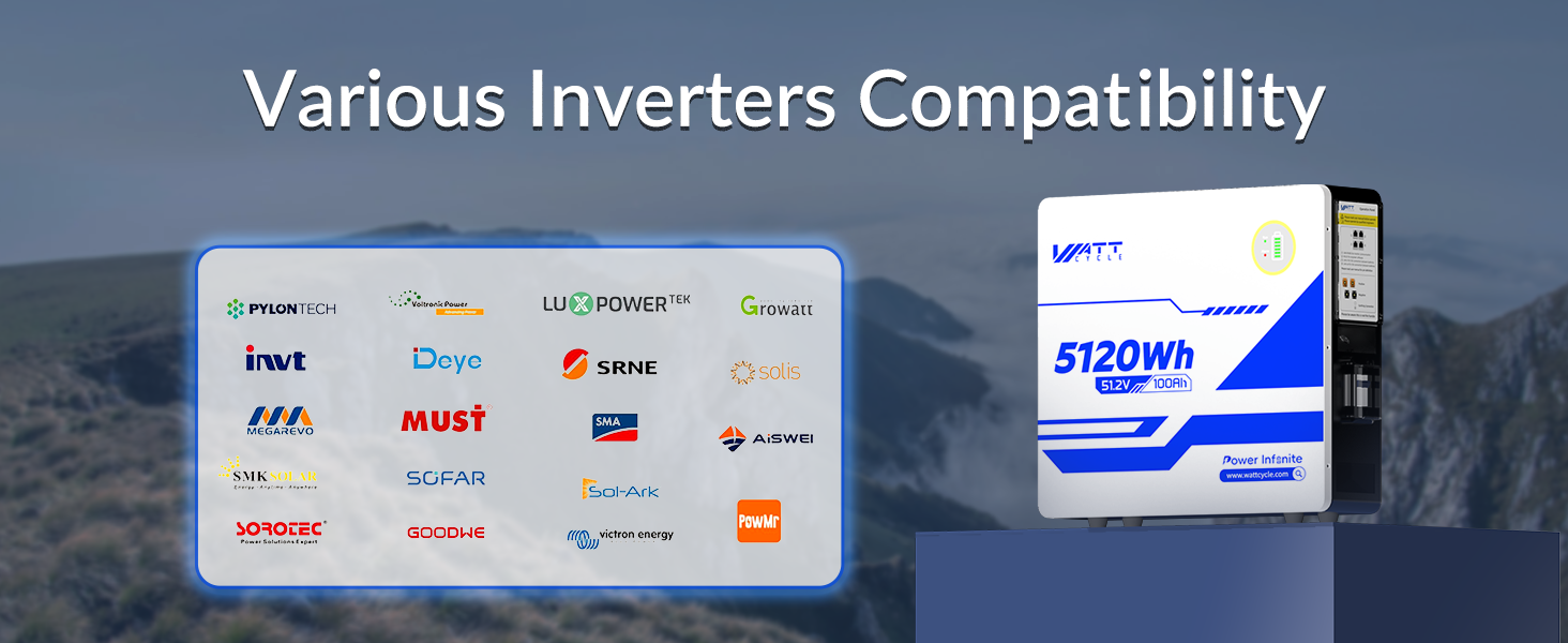 Überwachen Sie SOC (State of Charge – Ladezustand), Spannung, Strom, Leistung und Temperatur in Echtzeit über die WattCycle-App. Mit RS485- und CANBUS-Schnittstellen funktioniert sie mit intelligenten Wechselrichtern, MPPT-Ladereglern, Generatoren und weiteren Geräten.