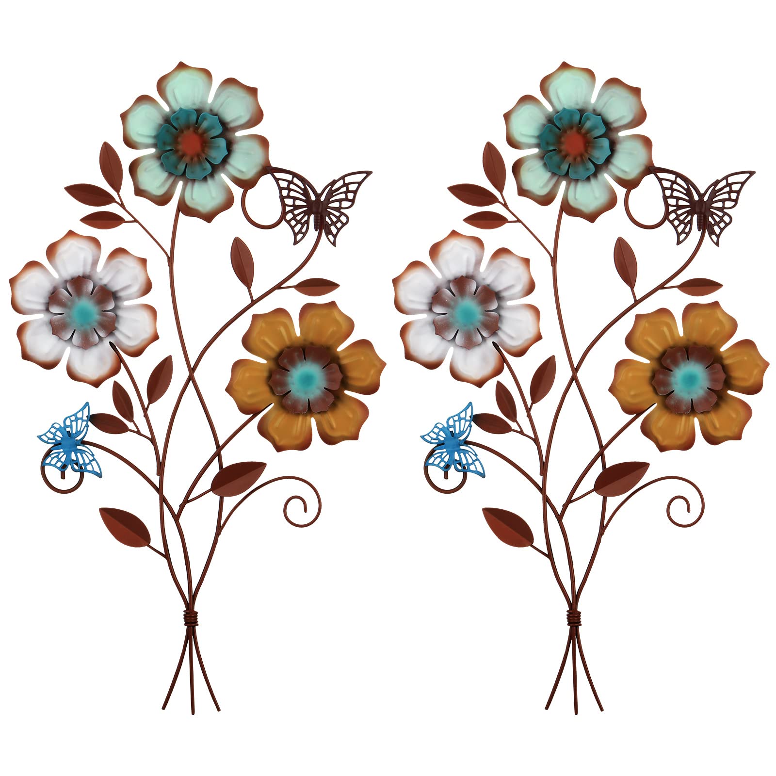 Features:This rustic wall flower can be shared with your family members, friends, relatives, neighbors and colleagues on birthdays, housewarmings and other proper occasions, helping to make their home more attractive and charming.Our metal floral art is characterized by tricolor flowers, and decorated with butterflies, looks beautiful and lifelike, easy to match with other home decorations to add an elegant charm to your home, and bring you a nice visual enjoyment.Specifications:Material: ironColor: as shown in picturesSize: about 38 x 23 cm/ 15 x 9.1 inchesPackage includes:2 x Tricolor flower wall decorNotes:Manual measurement, please allow slight errors on size.The colors may exist slight differences due to different screen displays.The pointed parts may include, please keep away from children, and use them carefully.