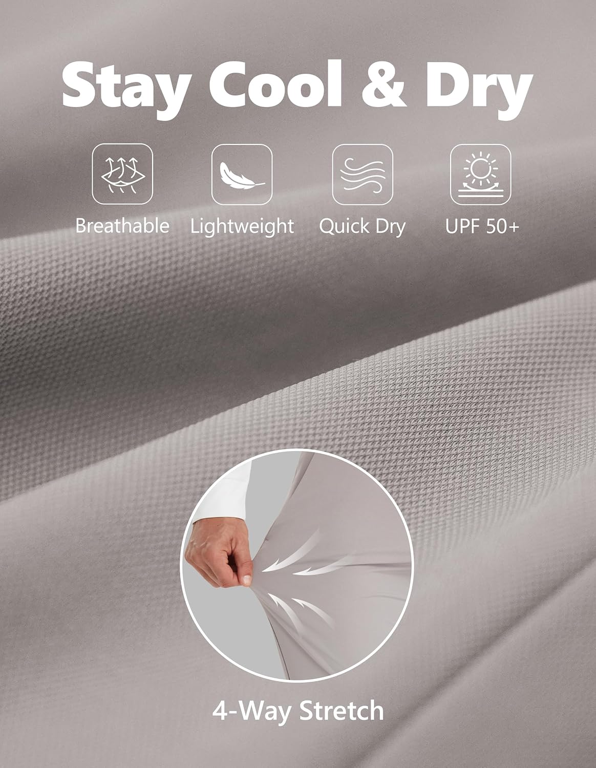 Stretch&Sun Protection—— Four way stretch fabric ensure comfort and flexibility with every move. Sun block fabric reduces your exposure to harmful UVA / UVB radiation.