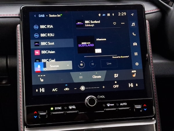 Lexus Link Connect with 9.8"" Touchscreen, 7"" digital instrument binnacle, Wireless Apple CarPlay and wired Android Auto, Wireless Smartphone charger, Heated front seats, Rear view camera, Front and rear parking sensors with intelligent clearance sensor, Auto headlights, Rain sensing wipers, Adaptive cruise control, Bluetooth connectivity, LED daytime running lights, e-Call (emergency call), Electric power steering, Push button start, Tyre pressure monitoring system