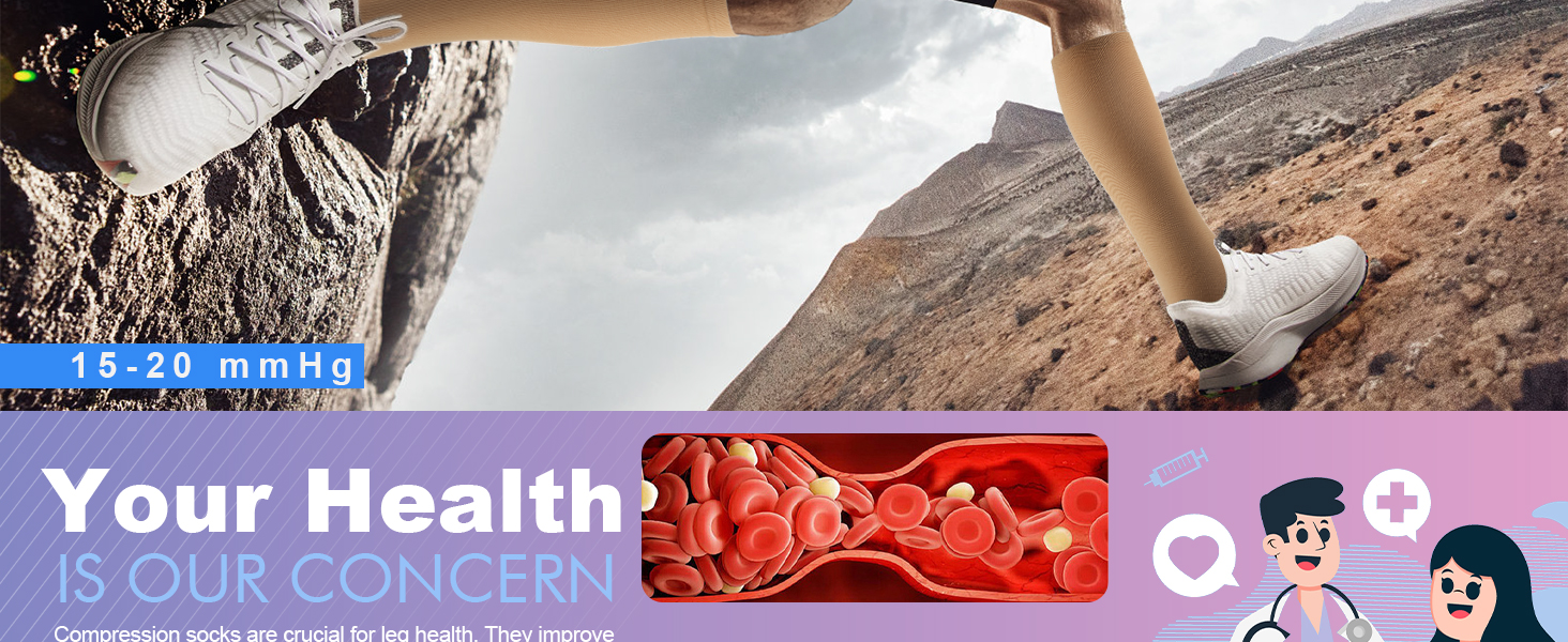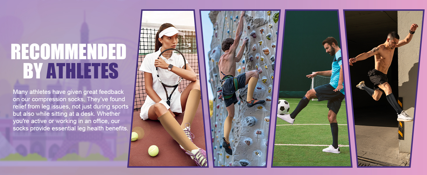 20-30mmHg medical grade compression socks pressure helps to reduce discomfort in leg fatigue, swelling, edema, aching legs, calf, feet, swollen ankles. Reduce lactic acid accumulation and help your legs recover faster after extended physical activity.