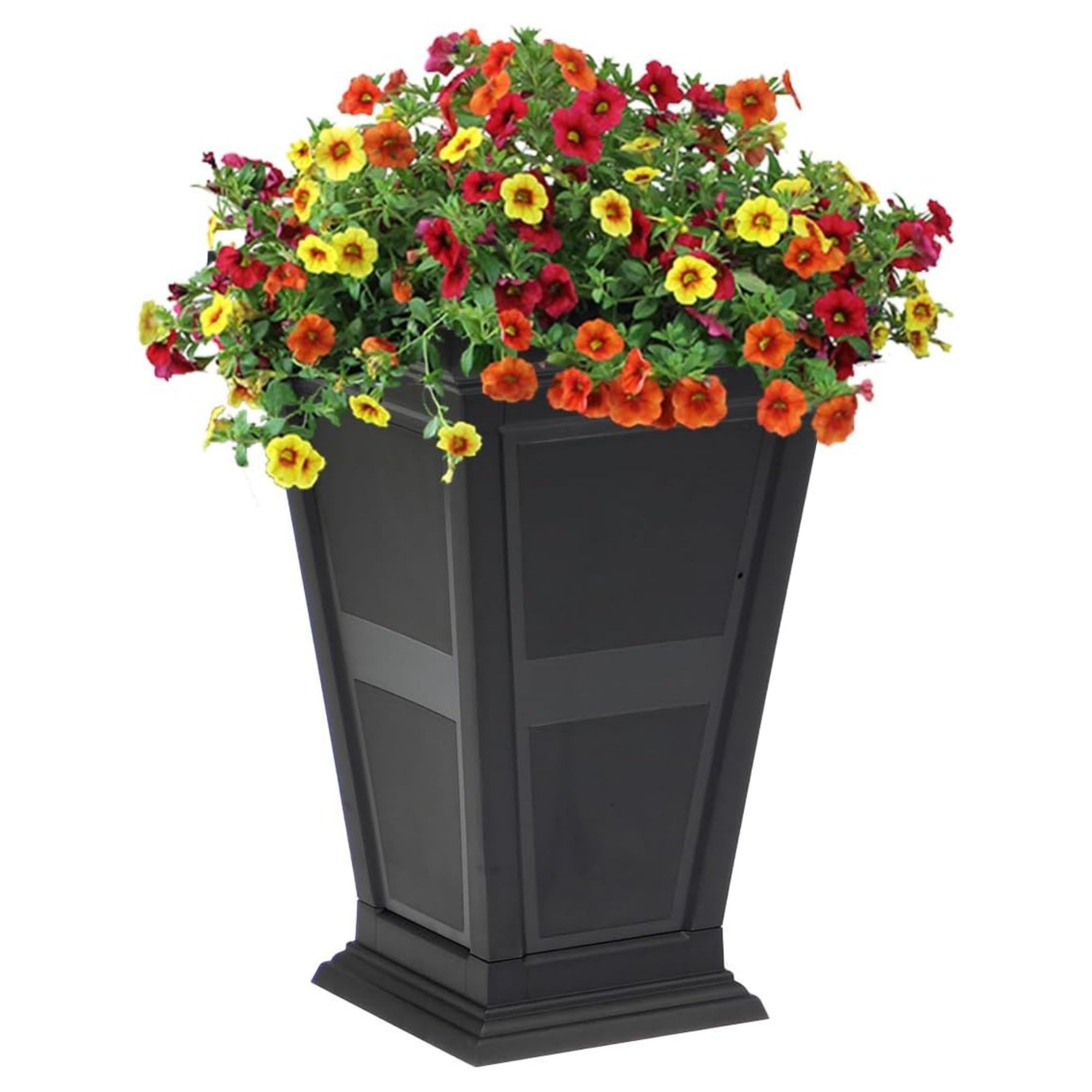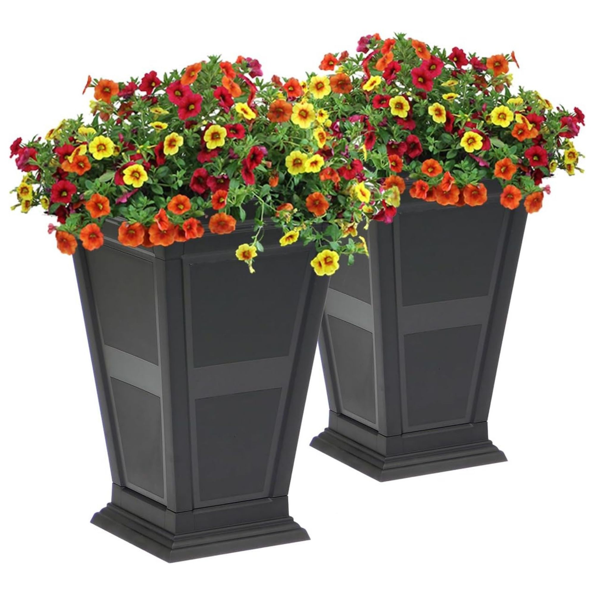 Each planter includes an integrated self-watering system with a 4-gallon water reservoir and a 5-gallon soil capacity, helping plants stay consistently hydrated while reducing the need for frequent watering. This thoughtful setup supports healthy growth for flowers, plants, small trees, or privacy arrangements in a variety of indoor and outdoor settings.