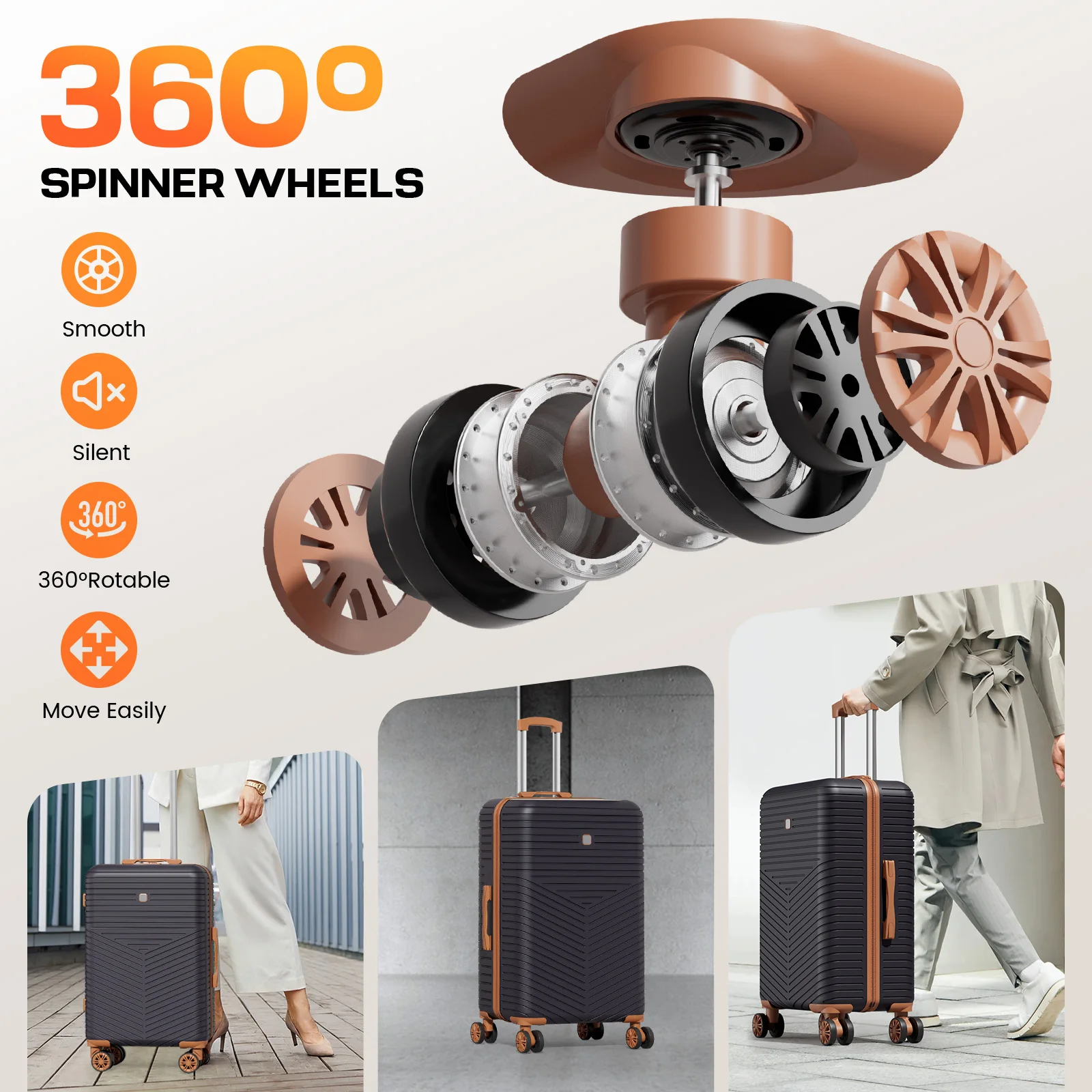 【360°Silent Spinner Wheels】Our suitcases have 360° swivel wheels for flexible movement in multiple directions; the retractable handle is ergonomic and has 3 height adjustments, making it easy for you to travel when you say you will